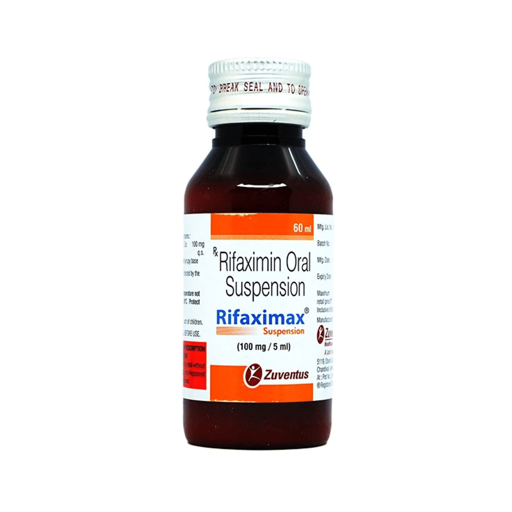 Rifaximax Suspension is an antibiotic medicine used to treat infectious diarrhea. It kills and stops the growth of harmful bacteria in the intestines. This way it helps to get rid of the bad bacteria causing the infection, which in turn reduces the diarrhea. Rifaximax Suspension can be used alone or in combination with other medicines. It may be taken with or without food, preferably at the same time each day. It should be used in the dose and duration as advised by the doctor. Take it at the same time each day to get the most benefit, and you should keep on taking this medicine for as long as you are prescribed. Stopping it early may make the infection come back and harder to treat.Some people may develop side effects like headache, constipation, fatigue, insomnia, dizziness, nausea, and chills. These side effects are usually temporary and go away during treatment as your body adjusts to the medicine. Consult your doctor if these side effects bother you or do not go away.Before starting treatment with this medicine, you should tell your doctor if you are pregnant, breastfeeding, or suffering from any liver, kidney, or heart problems, or if you are allergic to any medicine. Rifaximax Suspension is not effective in cases of travelers’ diarrhea. Use with caution in patients with severe hepatic impairment.