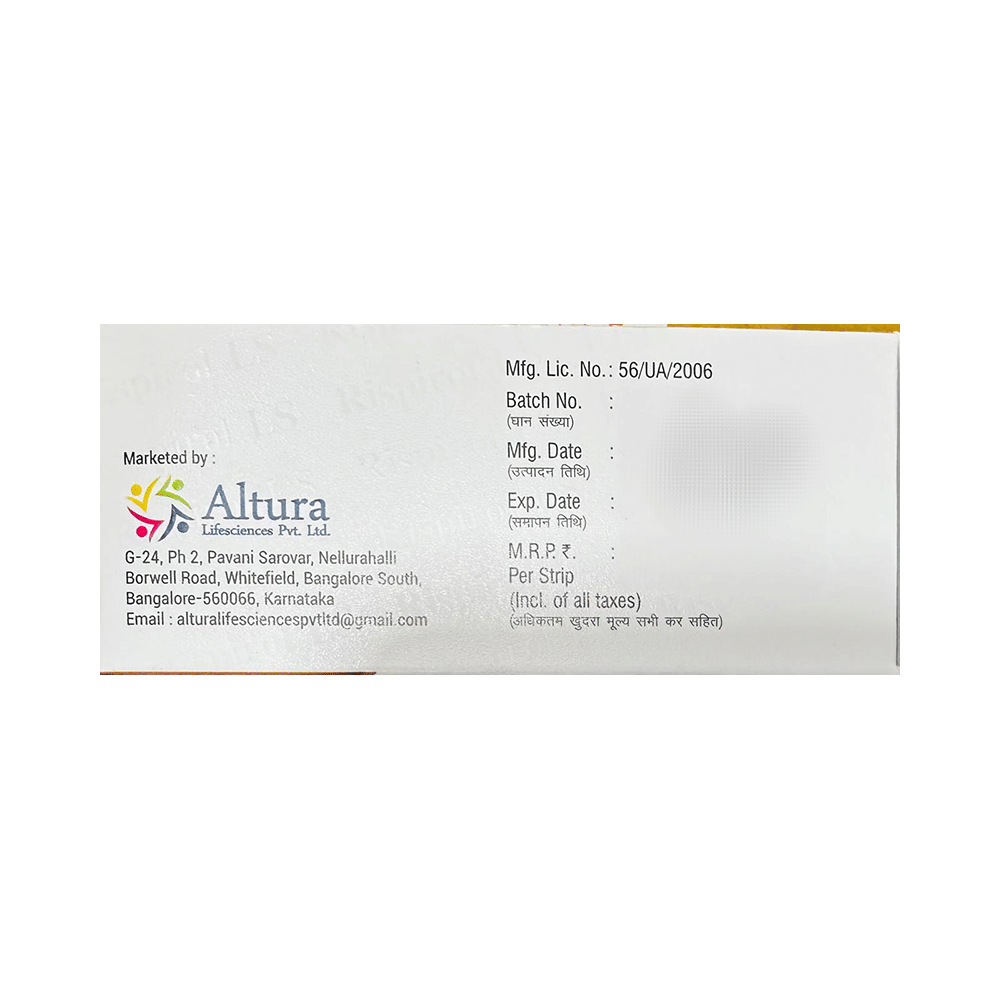 Rispirol LS Tablet MD is a combination medicine used in the treatment of schizophrenia. It works by modulating the action of certain chemical messengers in the brain that affect thoughts. Rispirol LS Tablet MD is taken with or without food, preferably at night. However, it is advised to take it at the same time each day, as this helps maintain a consistent level of medicine in the body. Take this in the dose and duration advised by your doctor. If you miss a dose of this medicine, take it as soon as you remember. It is important not to stop this medicine suddenly without talking to the doctor, as it may worsen your symptoms.Some common side effects of this medicine include nausea, constipation, upper respiratory tract infection, urinary tract infection, tremor, blurred vision, and dryness in the mouth. Initially, this medicine may cause a sudden drop in blood pressure when you change positions, so it is better to rise slowly if you have been sitting or lying down. It also causes dizziness and sleepiness. So, do not drive or do anything that requires mental focus until you know how this medicine affects you. This medicine may increase your weight, blood sugar, and cholesterol, but modifying your lifestyle by having a healthy diet and exercising regularly can reduce these side effects.Your doctor should also know about all other medicines you are taking, as many of these may make this medicine less effective or change the way it works. Inform your doctor if you are pregnant, planning pregnancy, or breastfeeding.