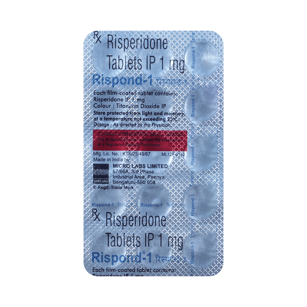 Rispond 1 Tablet is used in the treatment of schizophrenia (a mental disorder that can result in hallucinations or delusions and also adversely affects a person’s ability to think and behave) and mania. Rispond 1 Tablet is taken with or without food, preferably at night. However, it is advised to take it at the same time each day as this helps to maintain a consistent level of medicine in the body. Take this in the dose and duration as advised by your doctor and if you have missed a dose, take it as soon as you remember. It is important that this medication is not stopped suddenly without talking to your doctor as it may worsen your symptoms. However, discontinue this medicine immediately if you experience Neuroleptic malignant syndrome (NMS), characterized by fever, muscle rigidity, and altered consciousness or seizures.Some common side effects of this medicine include insomnia, sedation, somnolence, vomiting, coughing, parkinsonism, headache, and fever. Initially, this medicine may cause a sudden drop in blood pressure when you change positions, so it is better to rise slowly if you have been sitting or lying down. It also causes dizziness and sleepiness, so do not drive or do anything that requires mental focus until you know how this medicine affects you. This medicine may increase your weight but, modifying your lifestyle by having a healthy diet and exercising regularly can reduce this side effect.You should be cautious while using this medicine as it may increase the risk of developing diabetes, so it is better to monitor glucose regularly. Inform your doctor if you develop any unusual changes in mood or behavior, new or worsening depression, or suicidal thoughts while taking this medicine.