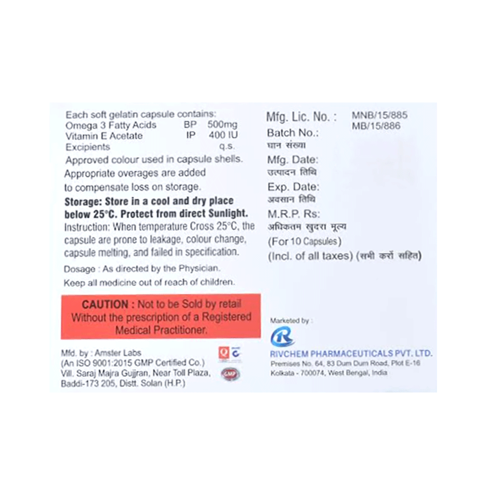 Salt Composition: Omega-3 fatty acid (500mg) + Vitamin E (400IU)