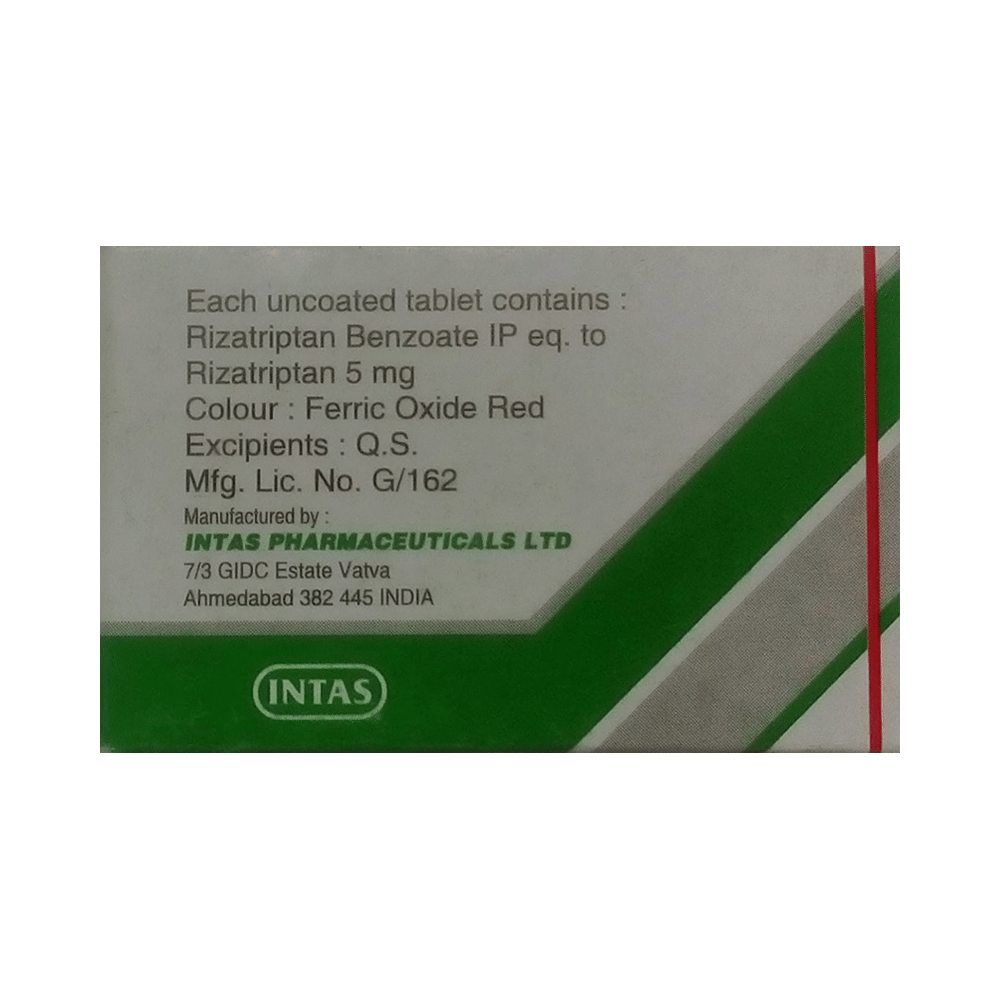 Rizora 5 Tablet is used in the treatment of acute attacks of migraine. It relieves the symptoms of migraine and prevents the attack from becoming worse. This medicine helps by narrowing the blood vessels, thereby relieving migraine headaches. Rizora 5 Tablet may be taken with or without food. However, it is advised to take it at the same time each day as this helps to maintain a consistent level of medicine in the body. Do not skip any doses and finish the full course of treatment even if you feel better and if you have missed a dose, take it as soon as you remember. You should continue to take this medicine for as long as the doctor advises and do not stop taking it suddenly.Side effects associated with the use of this medicine include dry mouth, sensation of heaviness, nausea, weakness, and paresthesia (tingling or pricking sensation). However, these are usually temporary and usually resolve on their own. Please consult your doctor if these do not subside or worry you.It may also cause sleepiness at the beginning of your treatment, so do not drive, operate machinery, until you know how this medicine affects you. This medicine may cause changes in your mood and you may feel depressed, therefore, regular monitoring of behavior is important. Pregnant or breastfeeding mothers should consult their doctor before taking this medicine.Inform your doctor if you are suffering from any heart problems, as the use of Rizora 5 Tablet is contraindicated in some heart diseases. Regular monitoring of blood pressure is required while taking this medicine. Consult your doctor and stop this medicine if you develop severe chest or stomach pain, bloody diarrhea, or significantly high blood pressure, after taking this medicine.