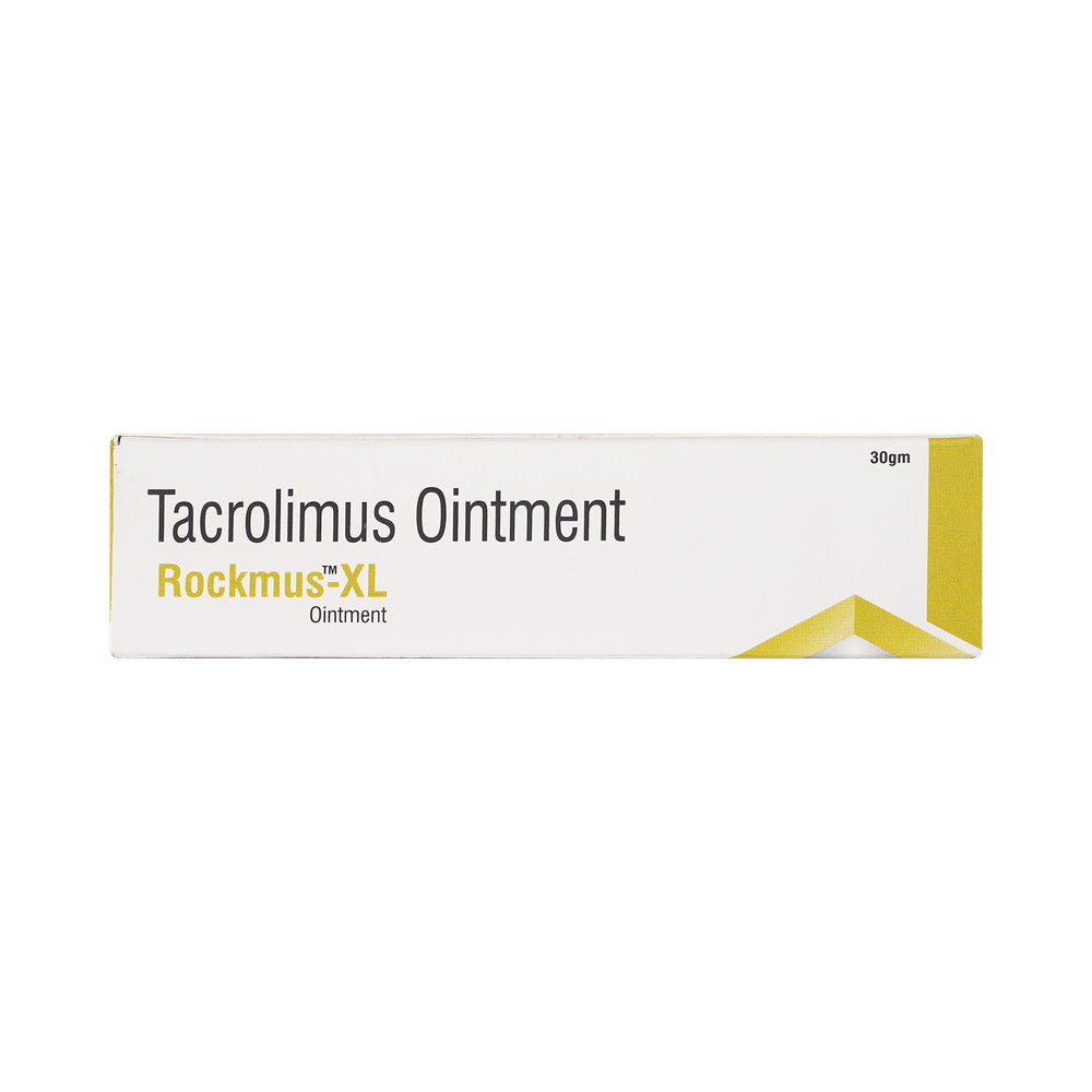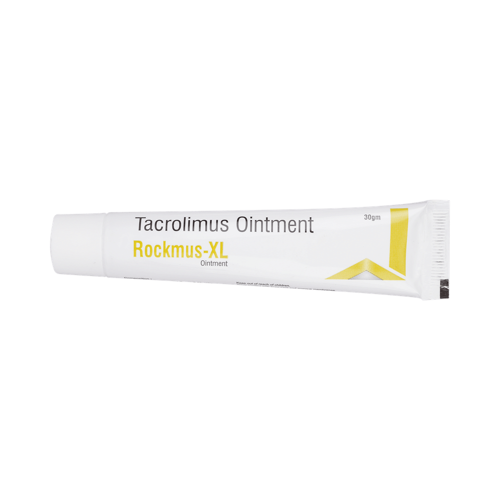 Rockmus XL Ointment is used to treat eczema (atopic dermatitis). It works by suppressing the activity of certain immune cells that cause inflammation (redness and swelling) of the skin. This relieves itching and improves rashes in atopic dermatitis. Rockmus XL Ointment is used for external use. It should be used 2-4 times a day on the affected area or use it as suggested by the doctor. It should be applied slowly and evenly to the skin until it is rubbed in. You should not use it too often and you should not cover the treated area with a bandage or plaster. You must inform your doctor if there’s no improvement even after two weeks of treatment or if the skin gets worse.Use of this medicine may cause some common side effects like erythema, headache, inflammation of hair follicle, and application site reaction like burning, irritation, itching, and redness. This medicine is not normally recommended during pregnancy or while breastfeeding unless it is clearly needed.