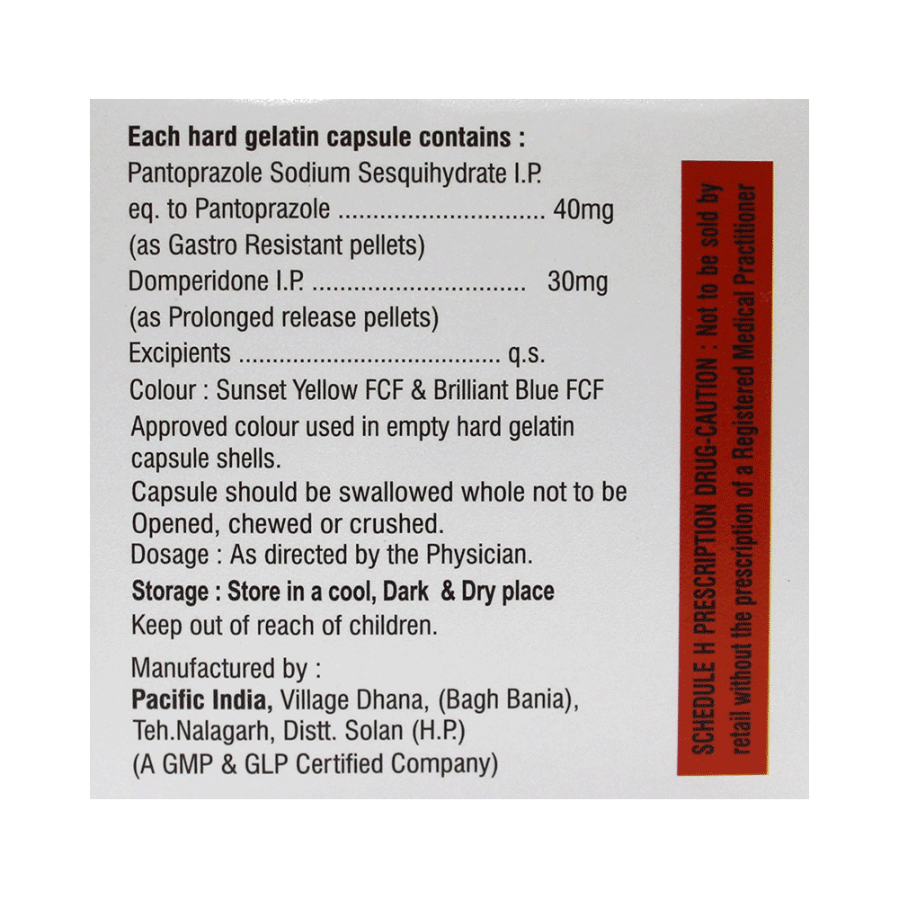 Salt Composition: Domperidone (30mg) + Pantoprazole (40mg)
