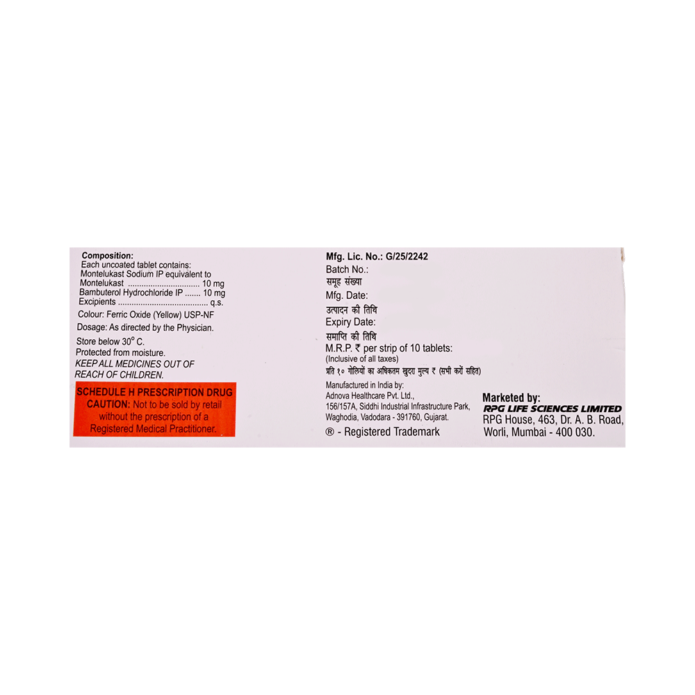 Salt Composition: Bambuterol (10mg) + Montelukast (10mg)