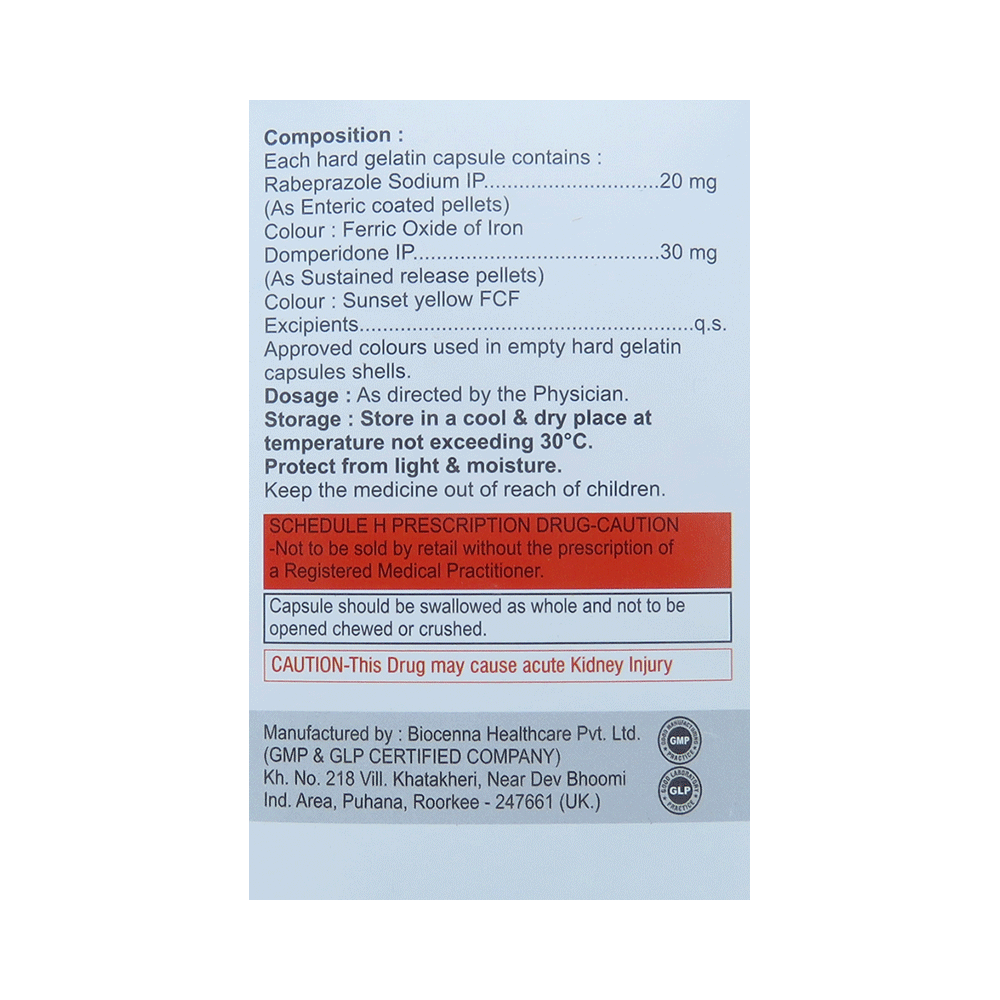 Salt Composition: Domperidone (30mg) + Rabeprazole (20mg)