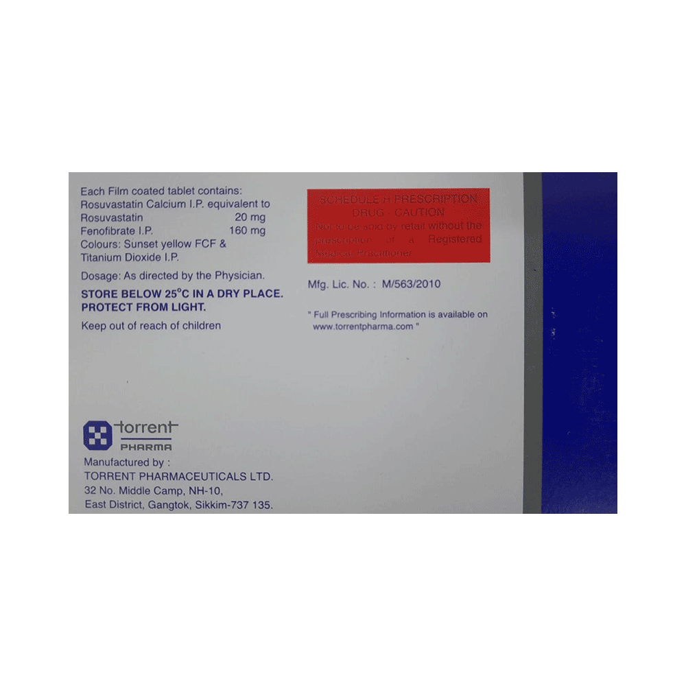 Salt Composition: Fenofibrate (160mg) + Rosuvastatin (20mg)
