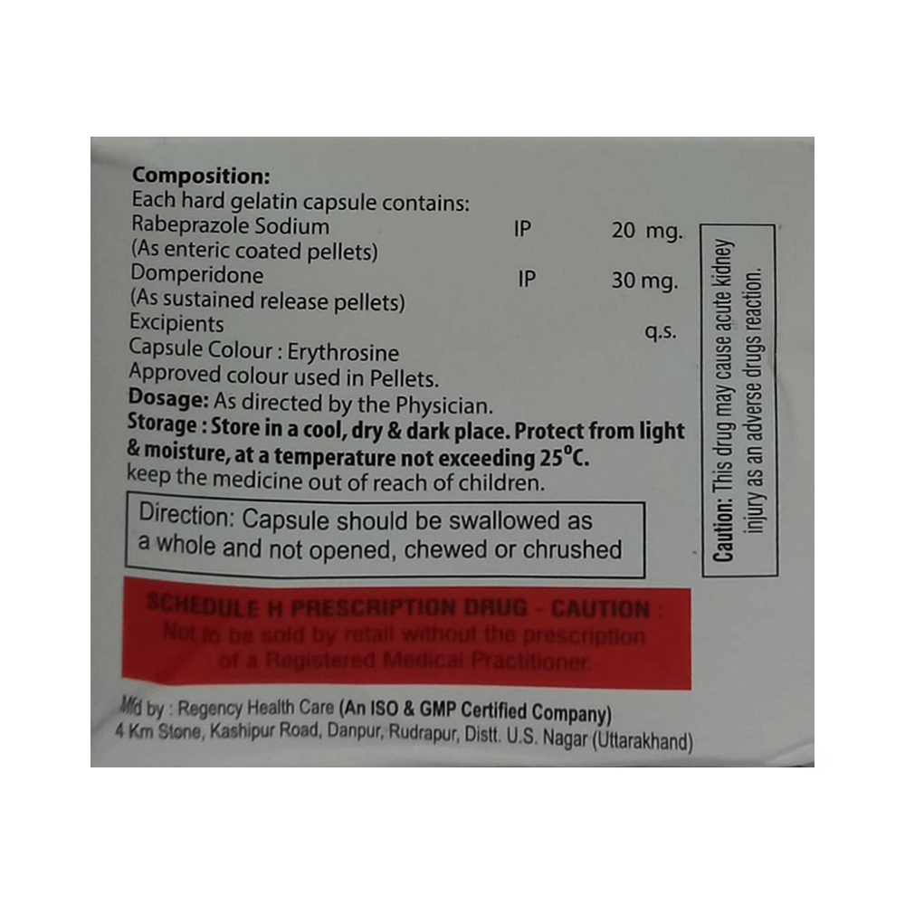 Salt Composition: Domperidone (30mg) + Rabeprazole (20mg)