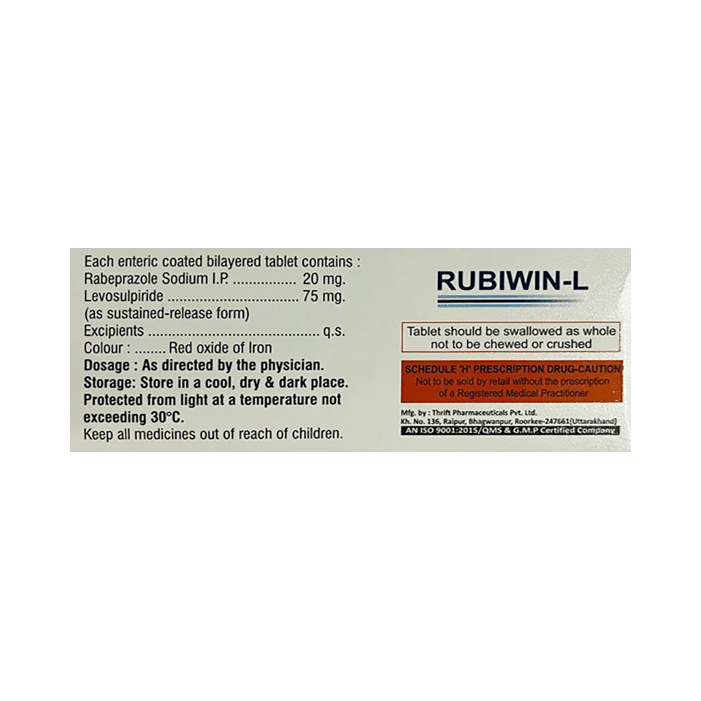 Rubiwin-L Tablet SR is a combination of two medicines: Levosulpiride and Esomeprazole.