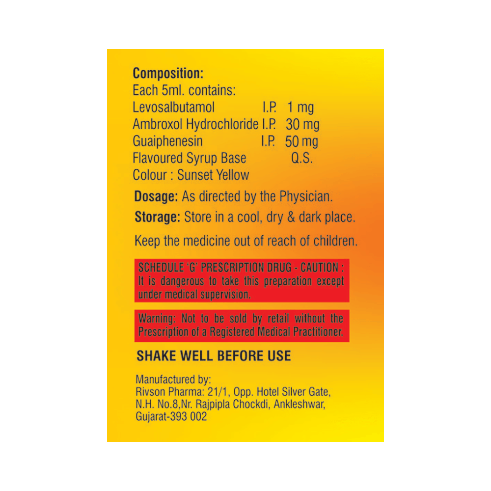 Salt Composition: Levosalbutamol (1mg/5ml) + Ambroxol (30mg/5ml) + Guaifenesin (50mg/5ml)