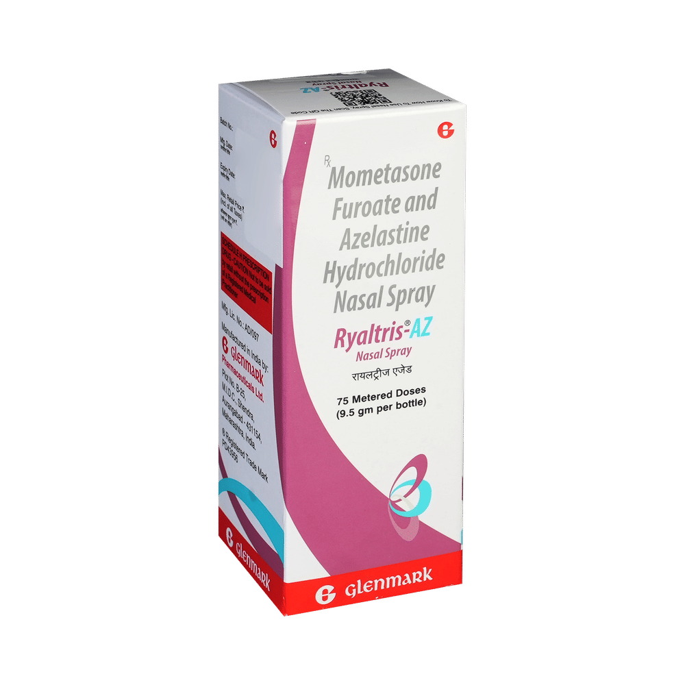 Ryaltris-AZ Nasal Spray is a combination of mometasone and azelastine. Mometasone works on the immune system to reduce the symptoms of inflammatory conditions and allergic reactions, such as swelling, and itching. Azelastine is an antiallergic medication that works by preventing the effects of a substance called histamine, which is produced by the body.