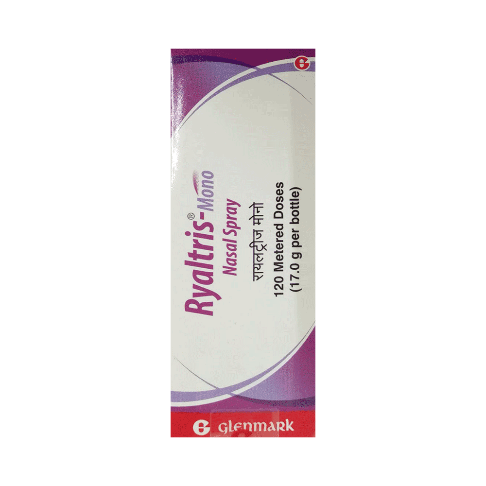 Ryaltris-Mono Nasal Spray is a medicine used to prevent and treat allergic symptoms like sneezing and runny nose due to allergies, nasal congestion, and nasal polyps. It works by reducing swelling and irritation in your nose and belongs to a group of medicines called corticosteroids. You should always use Ryaltris-Mono Nasal Spray as advised by your doctor. To get the full benefit of the medicine you should take it regularly. Blow your nose gently before using it, keep one nostril closed while applying the medicine into the other, and then sniff hard to make sure it reaches deep into the nose. Repeat for the other nostril.The most common side effects of this medicine include nasal irritation, sore throat, wheezing, nosebleed, upper respiratory tract infection, viral infections, and vomiting. If you are worried about any of the side effects, let your doctor know. Your doctor might be able to help you cope with the side effects. In general, you should try to avoid situations which make your symptoms worse (things like pollen and dust mites) and it’s best not to smoke.Before using this medicine, you should ask your doctor for advice if you are pregnant or breastfeeding. It is important to discuss the risks and benefits with your doctor. Let your doctor also know if you have any other medical conditions taking any other medicines.