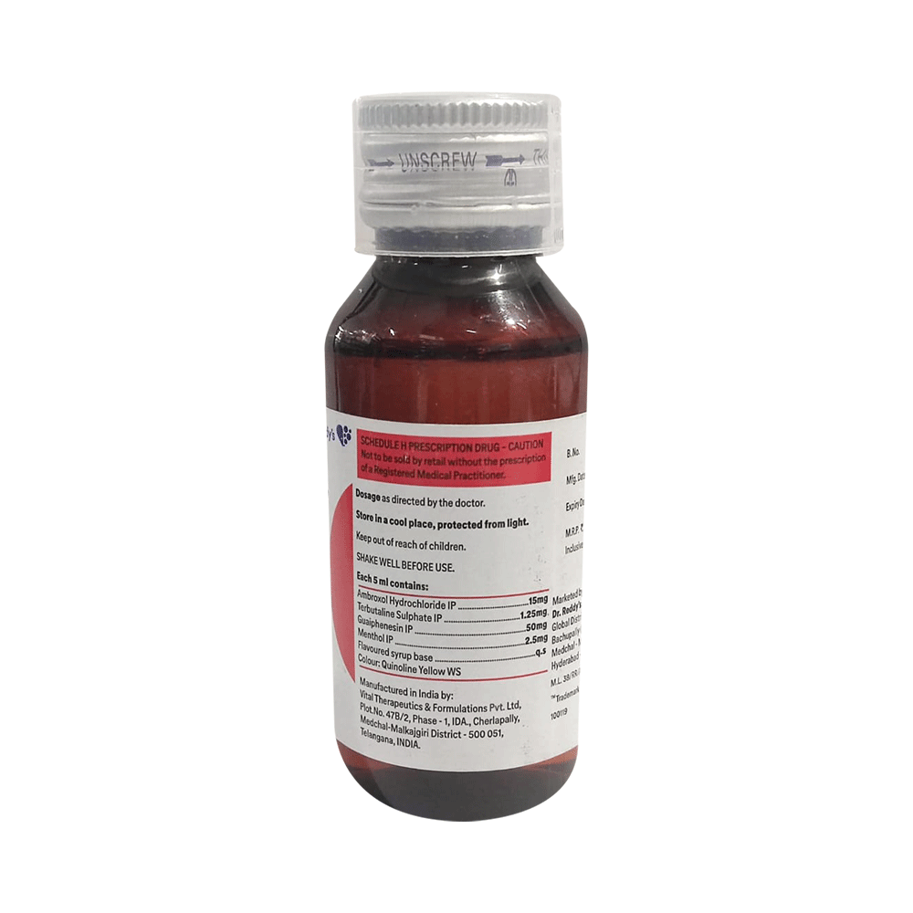 Salt Composition: Ambroxol (15mg/5ml) + Guaifenesin (50mg/5ml) + Menthol (2.5mg/5ml) + Terbutaline (1.25mg/5ml)