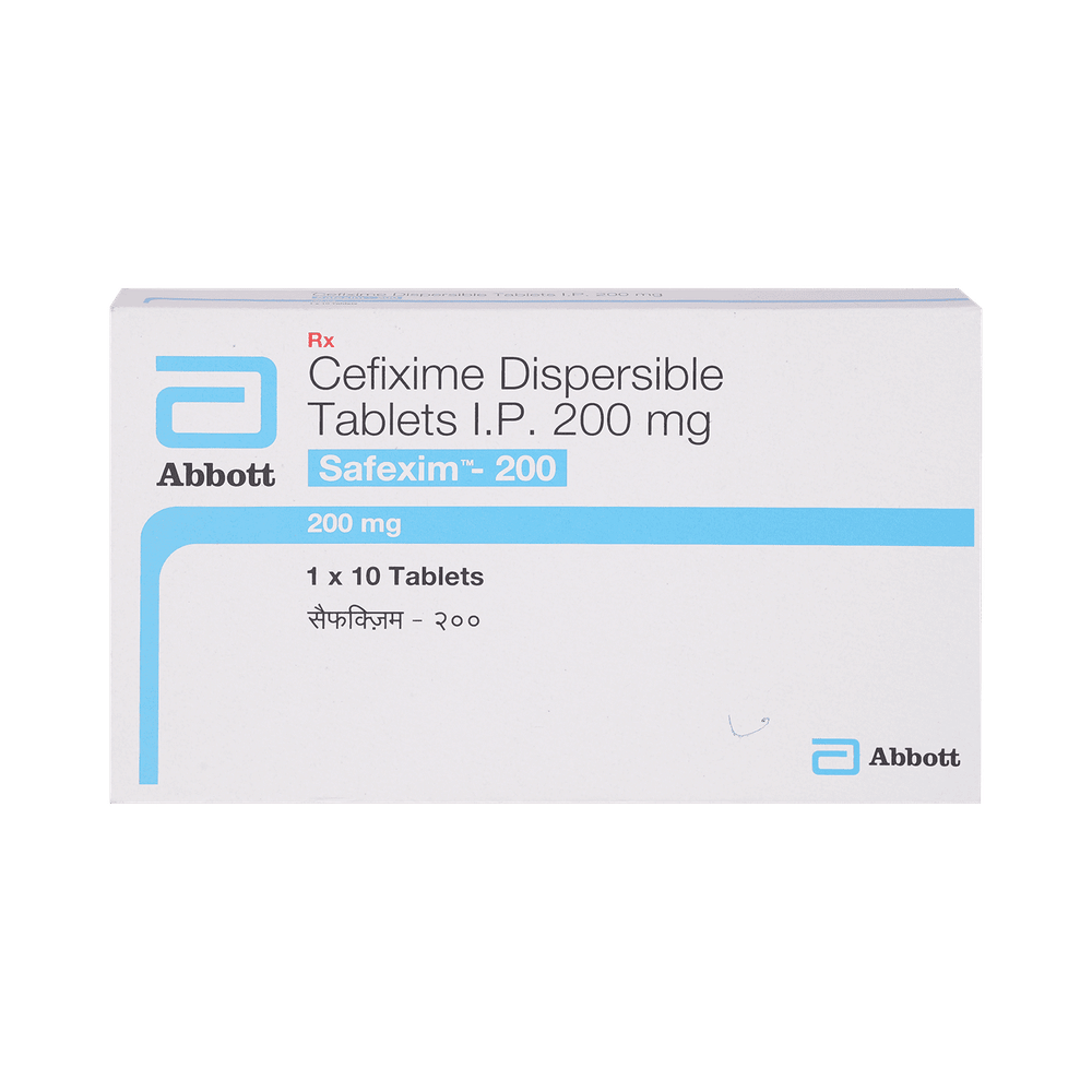 Safexim 200 Tablet DT is an antibiotic belonging that is used to treat a variety of bacterial infections. It is effective in infections of the respiratory tract (eg. pneumonia), urinary tract, ear, nasal sinus, throat, and some sexually transmitted diseases. Safexim 200 Tablet DT should be given under the supervision of a doctor or health professional. Use it regularly at evenly spaced intervals as per the schedule prescribed by your doctor. Using it at the same time every day will help you remember to take it. The dose will depend on what you are being treated for, but you should always complete the full course of this antibiotic as prescribed by your doctor. Do not stop taking it until you have finished, even when you feel better. If you stop taking it early, some bacteria may survive and the infection may come back or worsen. It will not work for viral infections such as flu or common cold. Using any antibiotic when you do not need it can make it less effective for future infections.The most common side effects of this medicine include nausea, stomach pain, indigestion, and diarrhea. These are usually mild but let your doctor know if they bother you or do not go away.Before taking it, you should let your doctor know if you are allergic to any antibiotics or have any kidney or liver problems. You should also let your healthcare team know all other medicines you are taking as they may affect, or be affected by this medicine. This medicine is generally regarded as safe to use during pregnancy and breastfeeding if prescribed by a doctor.
