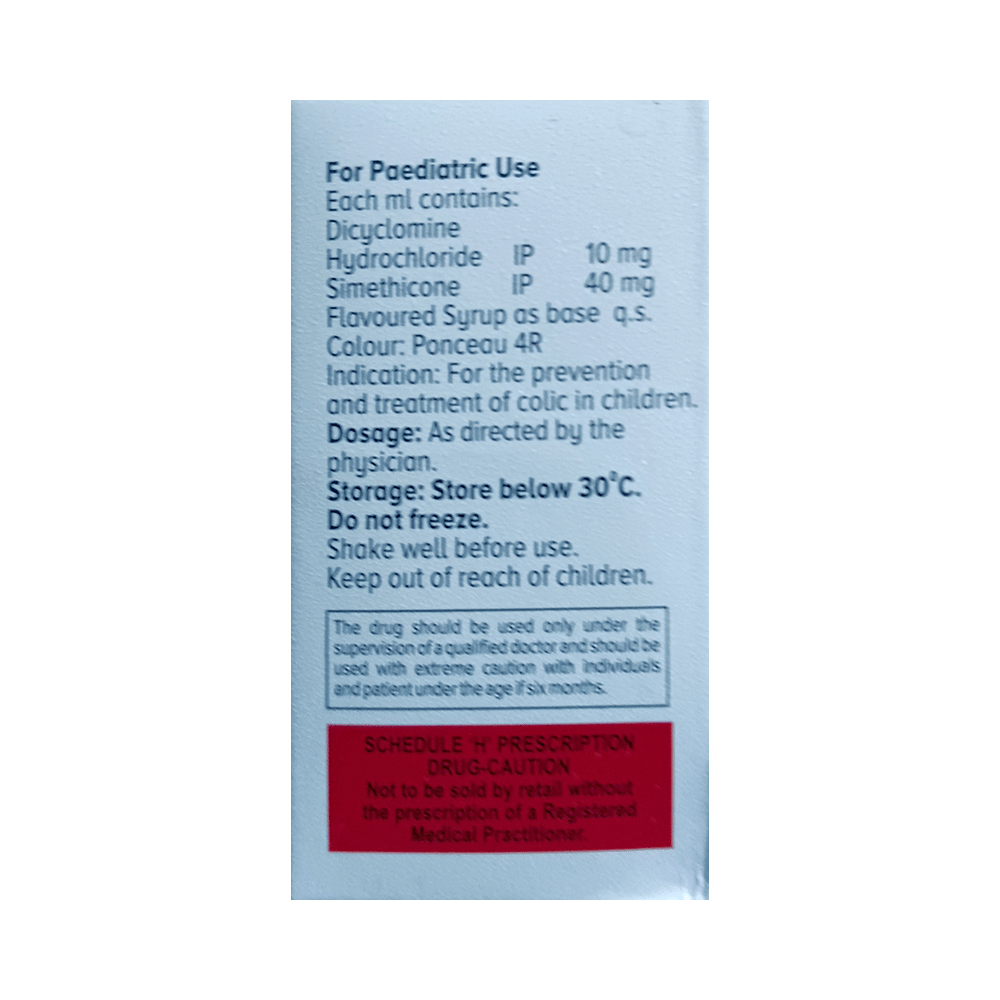 Saicolkid Kids Drop Honey Ginger is commonly given to treat stomach pain, bloating, and abdominal cramps, and pain associated with excessive acidity, gas, infections, and gastrointestinal tract diseases. It also controls symptoms of irritable bowel syndrome. It relaxes the muscles of the gut and absorbs the extra gas. Give the prescribed dose of Saicolkid Kids Drop Honey Ginger to your child orally before a meal or as suggested by the doctor. Your child’s doctor may prescribe this medicine for a few days to many days. But, do not continue it for more than 2 weeks without consulting the doctor as excessive and long-term use may have adverse effects on your child. Additionally, do not abruptly stop the medicine by yourself as it may bring back the symptoms or worsen your child’s condition.Some of the common yet temporary side effects of this medicine include nausea, vomiting, constipation, burping, vision problem, loss of appetite, and drowsiness. These usually subside once your child’s body adapts to the medicine. However, if these side effects persist or become bothersome for your child, do reach out to the doctor on a priority basis.You must let your child’s doctor know about all the medicines your child is being given. Also, inform the doctor of any previous history of allergy, intolerance to any food products, abdominal obstruction, liver impairment, kidney malfunction, or any birth defects, This information is very important for dose alterations and for planning your child’s overall treatment.