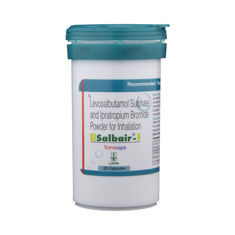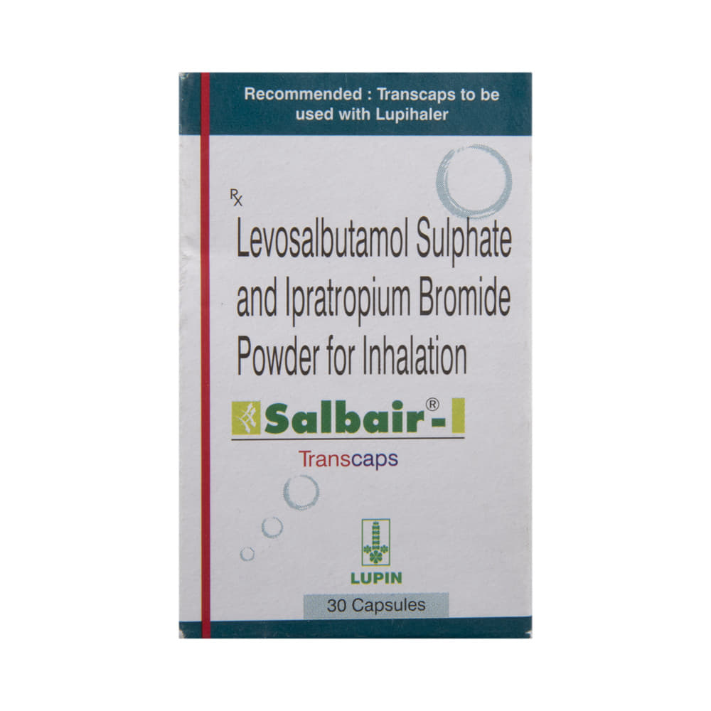 Salbair-I 100mcg/40mcg Transcaps is a combination of two medicines: Levosalbutamol and Ipratropium. Levosalbutamol is a bronchodilator while Ipratropium is an anticholinergic. They work by relaxing the muscles in the airways and widen the airways. Together, they make breathing easier.