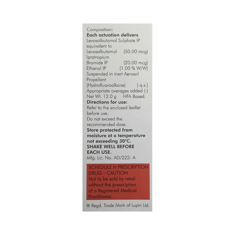 Salt Composition: Levosalbutamol (50mcg) + Ipratropium (20mcg)