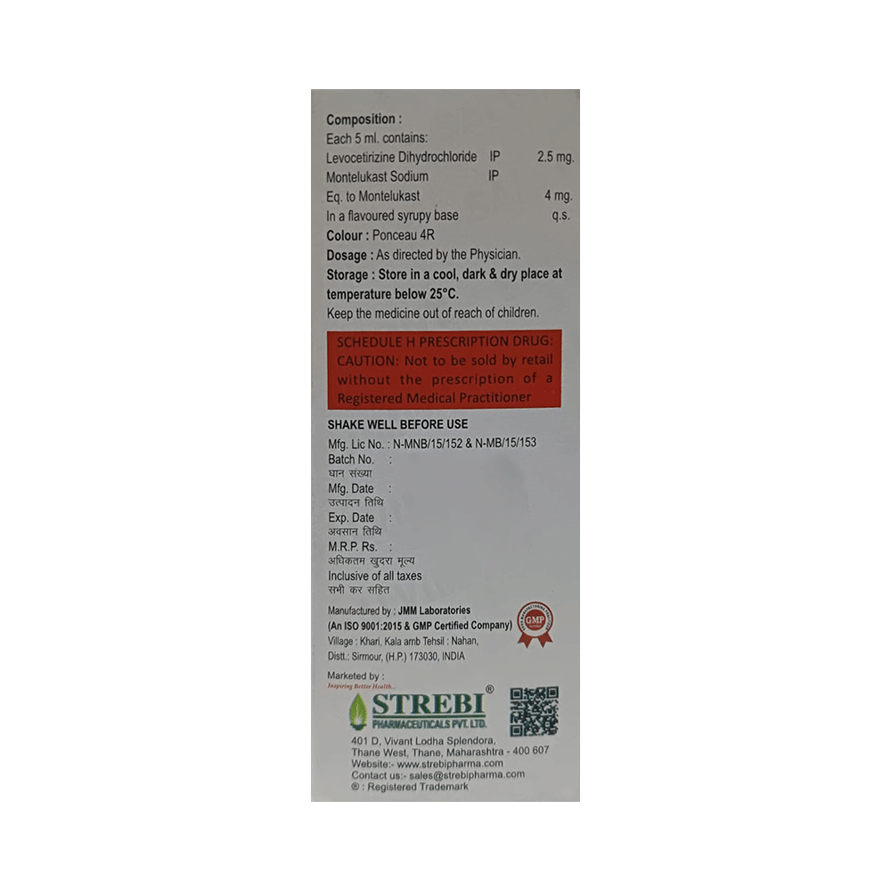 Salvimont Syrup is commonly prescribed in children to treat symptoms of allergy such as runny nose, sneezing, itching, swelling, congestion, and watery eyes. It may also help in the treatment of asthma and skin allergies. Give this medicine to your child at a fixed time before or after food in the prescribed dose, time, and way. For asthma, prefer giving Salvimont Syrup in the evening or 2 hours before physical activity. For allergy, it is best to give it either in the morning or in the evening, depending upon the time of onset of symptoms. In case your child has both, prefer giving it in the evening. If your child vomits within 30 minutes of taking this medicine, give the same dose again, but skip it if it’s already time for the next dose.Your child may start to feel better after a few regular doses. However, you must still complete the prescribed dose to ensure maximum benefit. Moreover, stopping the medicine abruptly may worsen your child’s condition. This medicine may cause some minor and temporary side effects like vomiting, diarrhea, nausea, dizziness, dry mouth, rash, and headache. Usually, these episodes subside once your child’s body adapts to the medicine. However, in case these effects persist or start bothering your child, consult your child’s doctor without any delay.Let your child’s doctor know if your child is already taking any medicines. Also, narrate your child’s complete medical history, including any prior episodes of allergy, heart problem, blood disorder, vascular disorders, birth defects, airway obstruction, lung anomaly, skin disorder, liver impairment, and kidney malfunction. This information is critical for dose alterations and in planning your child’s overall treatment.