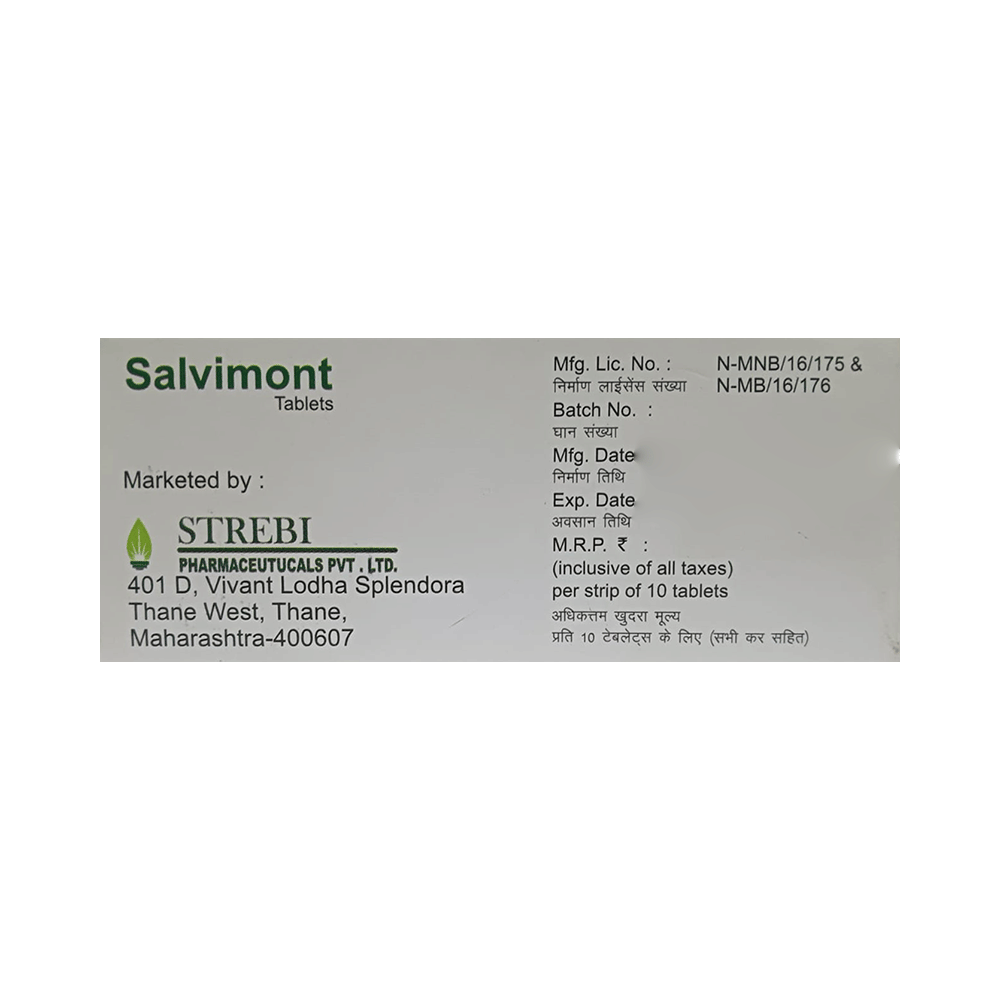 Take this medicine in the dose and duration as advised by your doctor. Swallow it as a whole. Do not chew, crush or break it. Salvimont Tablet may be taken with or without food, but it is better to take it at a fixed time.
