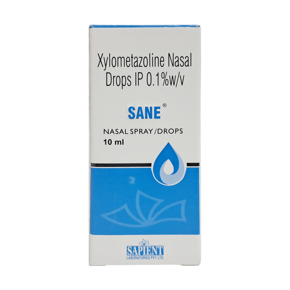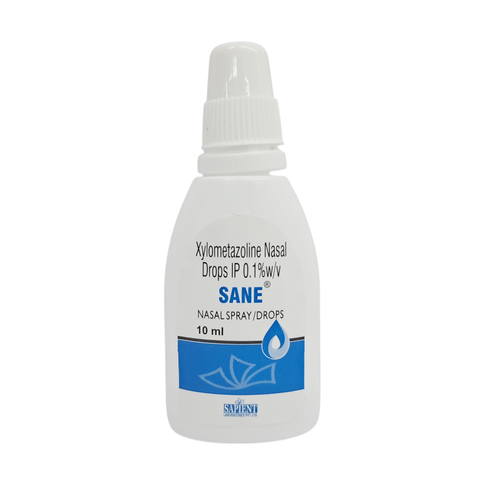 Sane Nasal Drops is a medicine used to treat nasal congestion (blocked nose) caused by the common cold or flu, hay fever, and other allergies. It shrinks blood vessels in your nose to relieve nasal congestion and blockage. Sane Nasal Drops should be used as you have been advised by your doctor. It provides only temporary relief so do not use it more often or for longer than recommended. Normally you should blow your nose gently before using it, keep one nostril closed while applying the medicine into the other, and then sniff hard to make sure it reaches deep into the nose. Then repeat for the other nostril. It provides relief very quickly and can last for several hours. If you use this medicine too often or for too long, it may worsen your symptoms rather than improve them.The most common side effects are burning sensation in the nose and throat, local irritation, nausea, headache, and dry nose. These are usually mild but if they bother you or do not go away, your doctor may be able to suggest ways of preventing or reducing them.It is generally a safe medicine but, before taking it, talk to your doctor about any health problems you have such as heart problems or high blood pressure (hypertension) or overactive thyroid gland or glaucoma, or prostate enlargement. Let your doctor know about any other medicines you are taking to make sure you are safe. Ask your doctor for advice before using this medicine if you are pregnant or breastfeeding.
