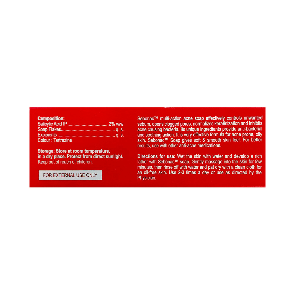 Sebonac 2% Soap is an anti-bacterial medicine used to treat acne. Acne appears as spots or pimples on your face, chest, or back. This medicine works by attacking the germs that cause them. Sebonac 2% Soap may be used alone or with other acne treatments. You should use it as your doctor's advice. The leaflet that comes with the product will also give instructions which you should read to get the most out of this medicine. You should normally wash and dry the affected area before applying a thin layer of gel once or twice a day. You should not apply it to damaged or broken skin and avoid contact with your mouth, eyes, and nose. It may take several weeks for your symptoms to improve and several months to get maximum benefit but after you have used it for a month you should see your doctor again to check if your condition is improving.Sebonac 2% Soap has some common side effects including itching, stinging, peeling, and redness of the skin. They are not usually serious but if they bother you or do not go away, tell your doctor. You may need to apply smaller amounts or use Sebonac 2% Soap less often. This medicine can make you more sensitive to sunlight. While using it you should try to avoid exposure to too much sunlight. If this is unavoidable, apply the gel in the evening. It can also bleach hair and fabrics including clothes so be careful to avoid contact with these.It is a safe medicine, but you should tell your doctor if you have other skin conditions and if you are taking any other medicines, especially those applied to the skin. It may not be suitable if you have very sensitive skin. Ask your doctor about using this product if you are pregnant or breastfeeding.