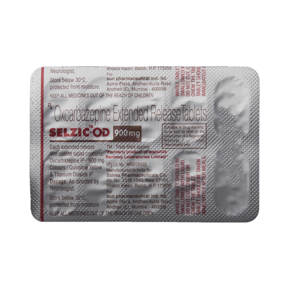 Selzic-OD 900mg Tablet ER is used to treat and prevent epilepsy (seizures). However, it cannot cure epilepsy and will only work to prevent seizures for as long as you continue to take the medicine. Selzic-OD 900mg Tablet ER may be used alone or in combination with other medicines. The dose and how often you need to take it will be decided by your doctor so that you get the right amount to control your symptoms. It may be increased gradually. You can take this medicine with or without food but take it at the same time each day to get the most benefit. It usually takes a couple of weeks to work. It is important to take this medicine regularly and for as long as you are advised, even if you feel well. Missing doses may trigger seizures and, if you stop, your condition may get worse. It should never be stopped suddenly.The most common side effects of this medicine include nausea, vomiting, feeling dizzy, tired or drowsy, unsteadiness, and low sodium levels in blood. Most of these are not serious. Keep taking the medicine but talk to your doctor if these side effects bother you or do not go away. However, if you notice a skin rash or redness, tell your doctor straight away. It could develop into a life-threatening skin condition called Stevens-Johnson syndrome. Long-term treatment with this medicine can cause osteoporosis (reduced bone mass) and increase your risk of breaking a bone. Anticonvulsants like this medicine may cause suicidal thoughts and behaviors. If your mood becomes depressed, tell your doctor.This medicine may not be suitable for everybody. Before using it, tell your doctor if you have ever had heart problems, kidney or liver disease, difficulty urinating, depression, or suicidal thoughts. Many other medicines can interfere with it and some should not be taken together so tell your doctor all the medicines you are taking to make sure it is safe. If you are pregnant, do not start or stop taking this medicine without asking your doctor. Drinking alcohol should be avoided as it can increase some of the side effects and can also increase your risk of seizures. You may need frequent blood tests to help your doctor make sure you are taking the right dose both before you start and while you are using it.