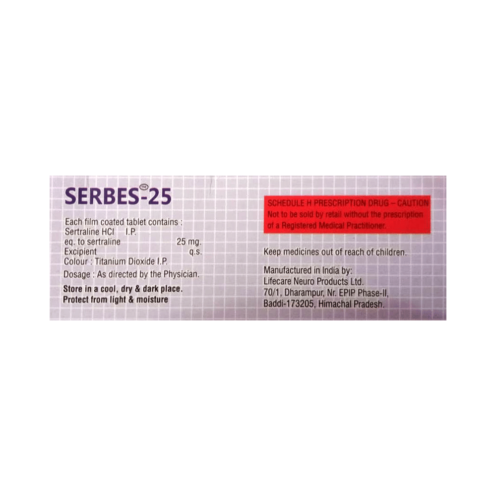 Take this medicine in the dose and duration as advised by your doctor. Swallow it as a whole. Do not chew, crush or break it. Serbes 25 Tablet may be taken with or without food, but it is better to take it at a fixed time.