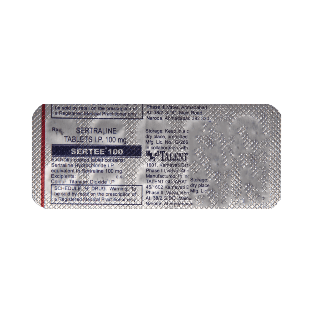 Sertee 100 Tablet is a medicine that is used to treat major depressive disorder (MDD) and obsessive-compulsive disorder (OCD). It works by increasing the levels of serotonin, a natural chemical in the brain that plays an important role in mood, emotions, and behavior. Sertee 100 Tablet should be taken exactly as prescribed by your doctor. It can be taken with or without food, but it is best to take it at the same time each day to help you remember. Treatment for depression and OCD often takes several weeks before you start to feel the full benefit, so it is important to keep taking the medicine regularly and not stop suddenly, even if you feel better.Stopping the medicine too quickly may cause withdrawal symptoms or make your condition return. For the best results, combine the treatment with healthy habits such as regular sleep, exercise, and support from family, friends, or counseling if recommended.Some common side effects of Sertee 100 Tablet include nausea, indigestion, loss of appetite, increased sweating, tremors, insomnia (difficulty in sleeping), and diarrhea. Sexual side effects like decreased sexual drive, delayed ejaculation, and erectile dysfunction may also be seen. Let your doctor know straight away if you develop any sudden worsening of mood or any thoughts about harming yourself.Before taking this medicine, you should tell your doctor if you have epilepsy (seizure disorder or fits), diabetes, liver or kidney disease, heart problems, or glaucoma. These may affect your treatment. Pregnant or breastfeeding women should also consult their doctor before taking it. Some other medicines may affect the way it works, especially other antidepressants and medicines called MAO inhibitors. Inform your doctor about all the medicines you are taking to make sure you are safe.