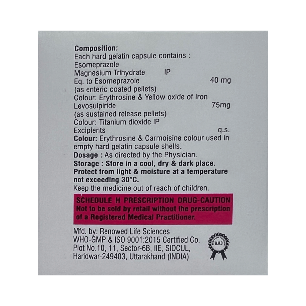 Salt Composition: Levosulpiride (75mg) + Esomeprazole (40mg)