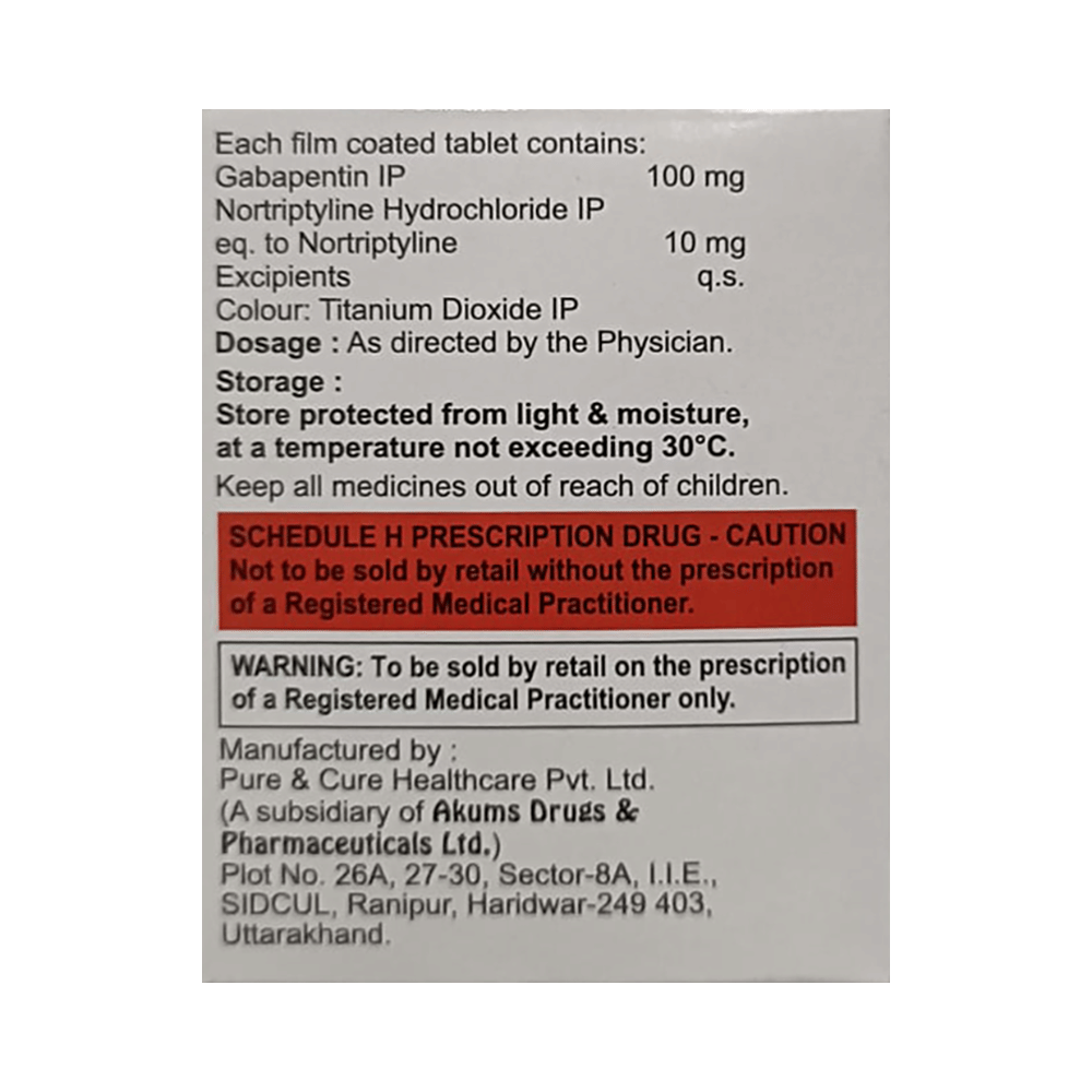 Salt Composition: Gabapentin (100mg) + Nortriptyline (10mg)