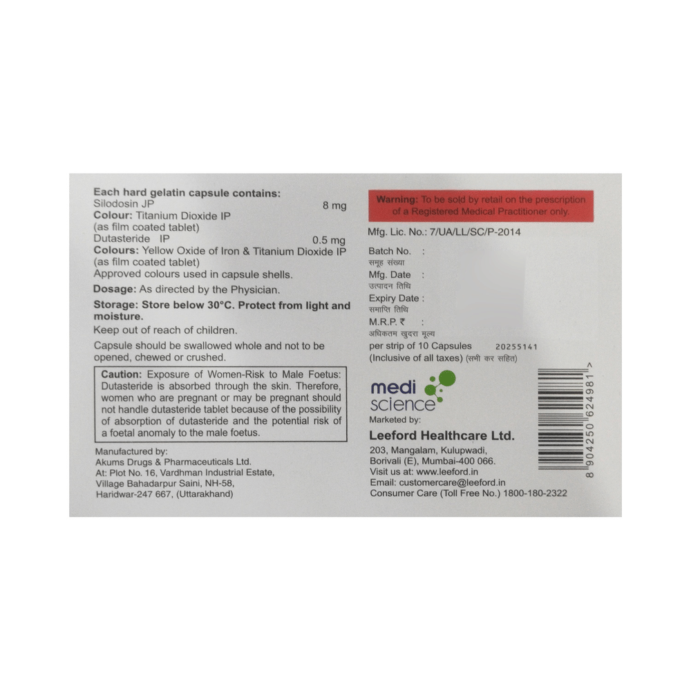 Salt Composition: Silodosin (8mg) + Dutasteride (0.5mg)