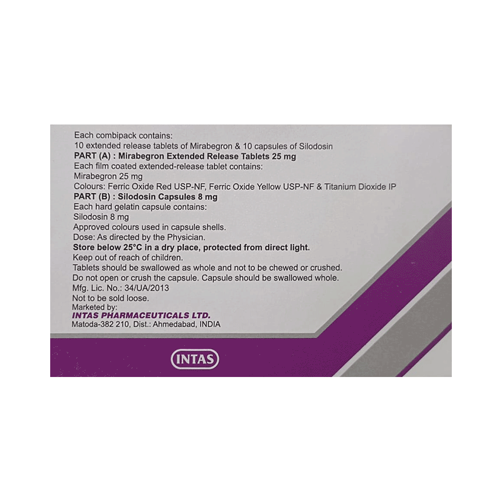 Salt Composition: Mirabegron (25mg) + Silodosin (8mg)