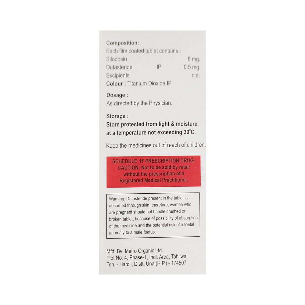 Salt Composition: Silodosin (8mg) + Dutasteride (0.5mg)