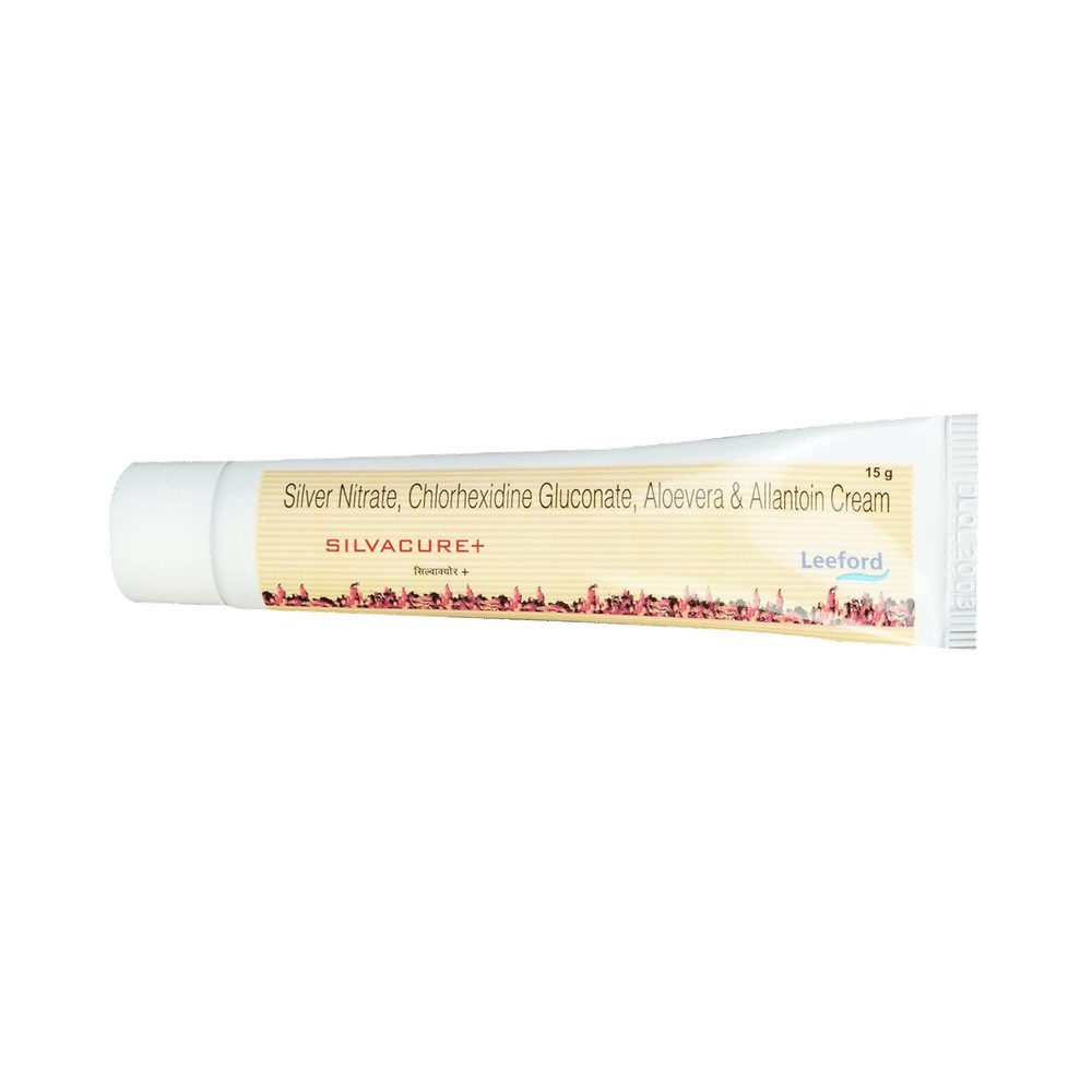 Silvacure Plus Cream is a combination of four medicines. Silver Nitrate is an antiseptic. It works by releasing silver ions into the skin which kills or prevents the growth of infectious microorganisms. Chlorhexidine Gluconate is an antiseptic. It works by killing harmful microorganisms and cleans the affected area. Allantoin is a skin protectant that works as a moisturizer and relieves minor skin irritations. Aloe Vera is a plant. Its extracts form a protective layer on the skin by restoring moisture, so that it feels hydrated and refreshed.