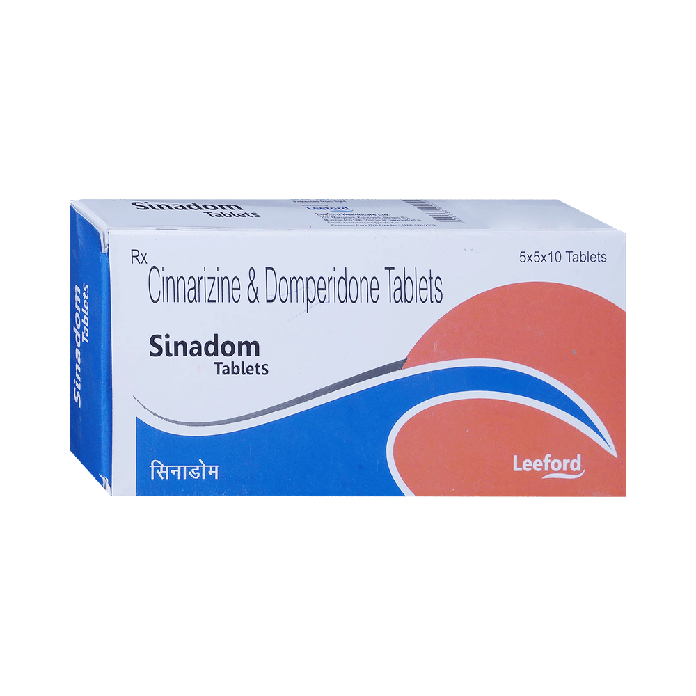 Sinadom Tablet is a combination of two medicines: Domperidone and Cinnarizine.