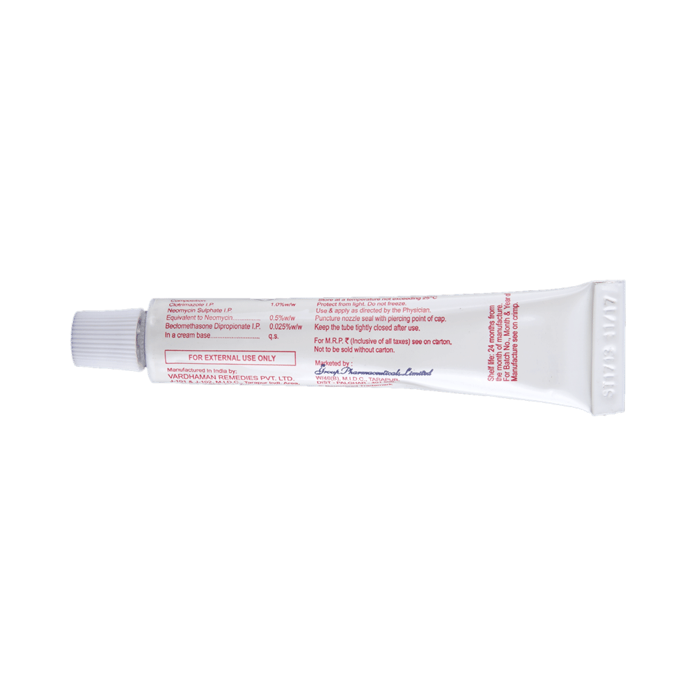 Salt Composition: Beclometasone (0.025% w/w) + Neomycin (0.5% w/w) + Clotrimazole (1% w/w)