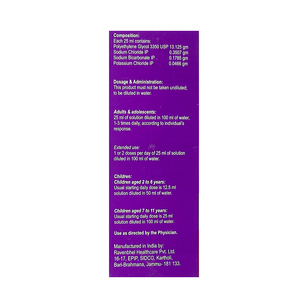 Salt Composition: Potassium Chloride (0.0466gm) + Sodium Chloride (0.3507gm) + Sodium Bicarbonate (0.1785gm) + Polyethylene Glycol (13.125gm)