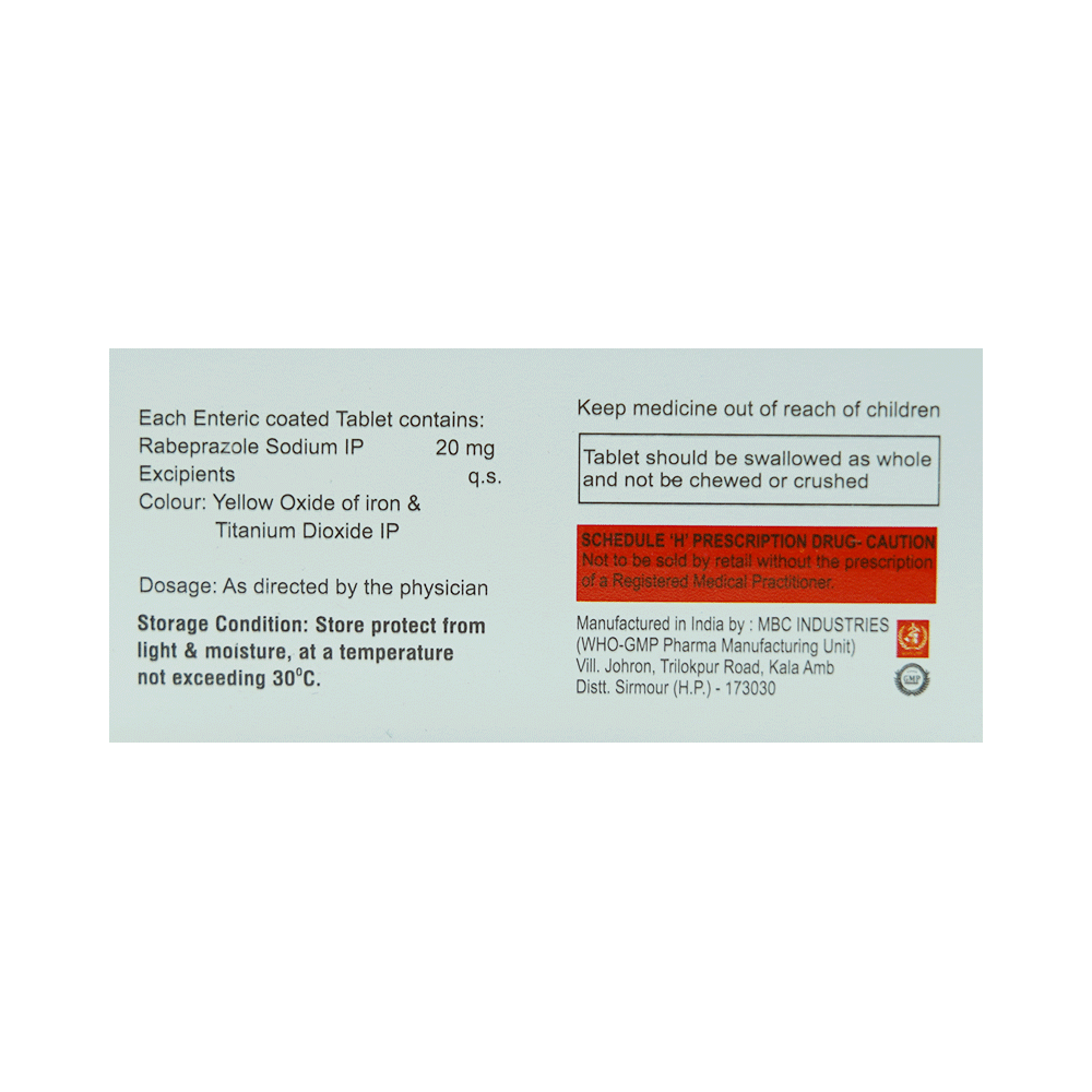 Salt Composition: Rabeprazole (20mg)