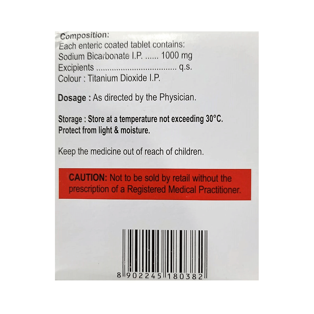 Sobiup 1000 Tablet is an antacid used in the treatment of indigestion, metabolic acidosis and used as an alkalinizing agent. It acts as a buffer that helps neutralize excess acid and restore a healthier pH level in the body. Sobiup 1000 Tablet relieves irritation by producing carbon dioxide which neutralizes the acid present in the stomach. It also increases the pH of blood and urine, thereby correcting acid indigestion, heartburn. Additionally, it helps in the removal of toxic substances from the body in certain types of poisoning.Sobiup 1000 Tablet may be taken with or without food in a dose and duration as advised by the doctor. Excessive intake may cause electrolyte imbalance leading to unwanted side effects. Keep taking this medicine for as long as your doctor recommends. If you stop treatment too early your symptoms may come back and your condition may worsen.Common side effects of this medicine include high sodium levels, cerebral edema, alkalosis, and hypokalemia. Let your doctor know if any of these side effects persist or get worse. They may be able to help by adjusting the dosage or by prescribing you an alternate medicine.It is important to consult a doctor before taking Sobiup 1000 Tablet if you are suffering from stomach and kidney disease. Let your doctor also know about all other medications you are taking as some may affect, or be affected by this medicine. Pregnant or breastfeeding women should also consult their doctor before taking this medicine.