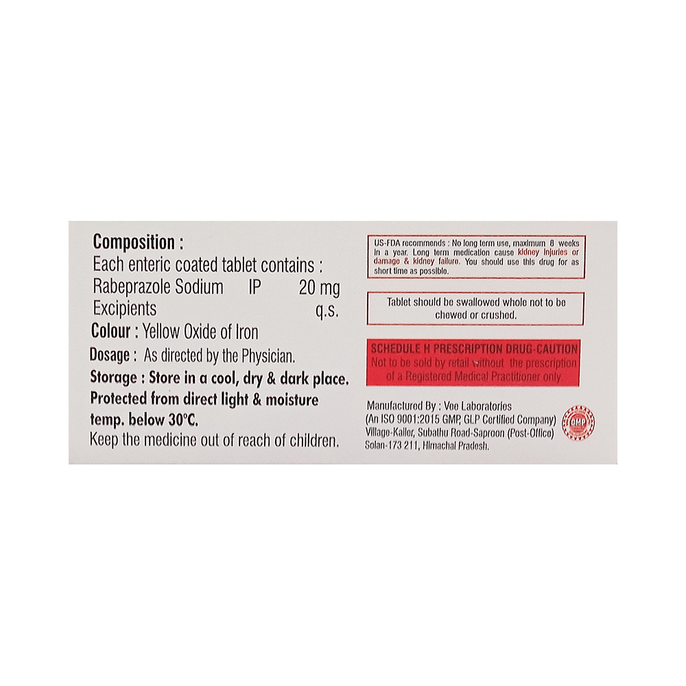 Salt Composition: Rabeprazole (20mg)