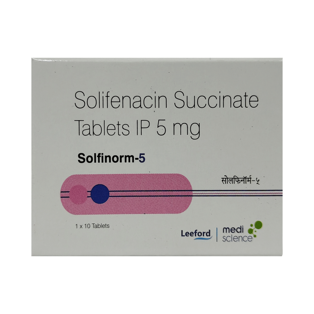 Solfinorm 5mg Tablet is an antimuscarinic. It works by relaxing muscles of the urinary bladder to prevent frequent, urgent or uncontrolled urination.