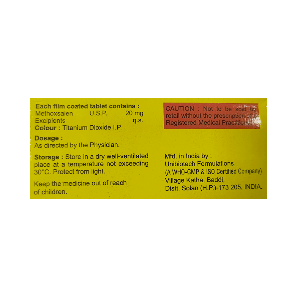 Solin 20 Tablet is prescribed along with UV-A rays for the treatment of vitiligo and psoriasis.
