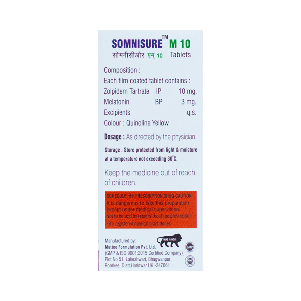 Somnisure M 10 Tablet helps promote sleep in people who have difficulty sleeping.