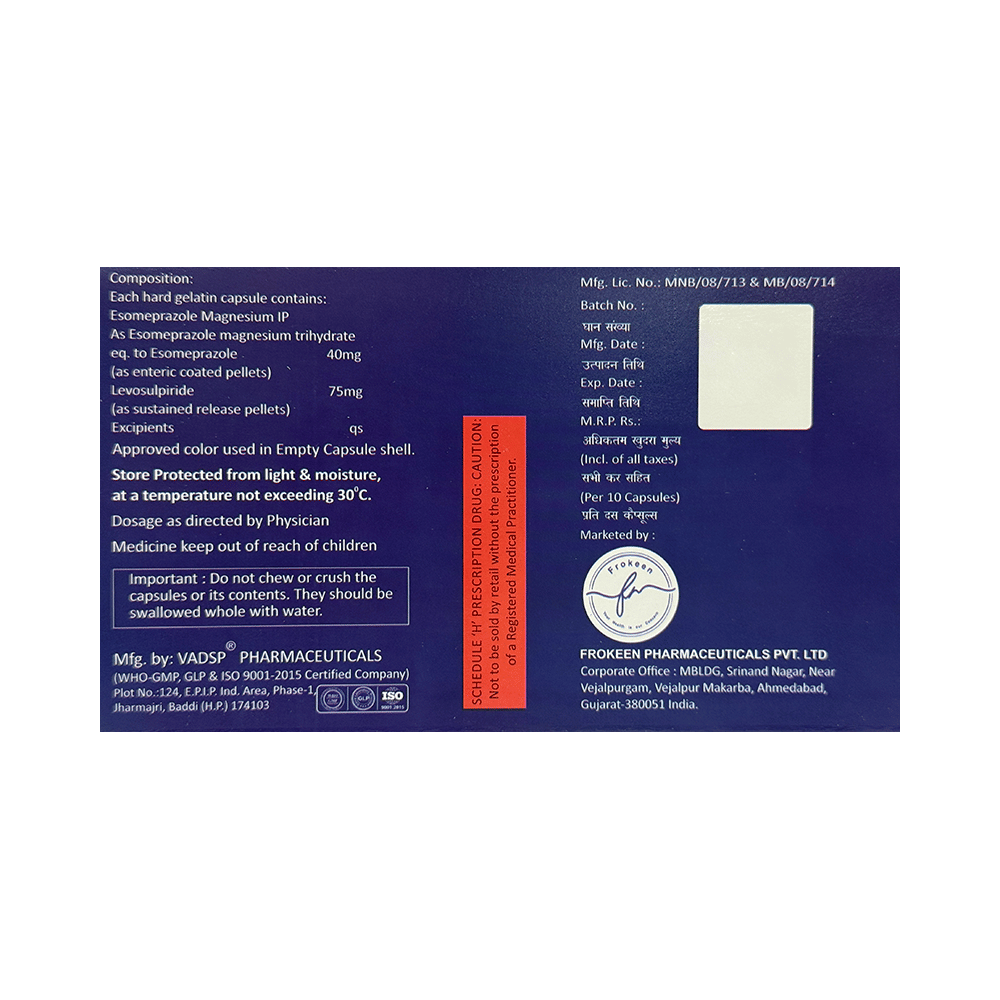 Salt Composition: Levosulpiride (75mg) + Esomeprazole (40mg)