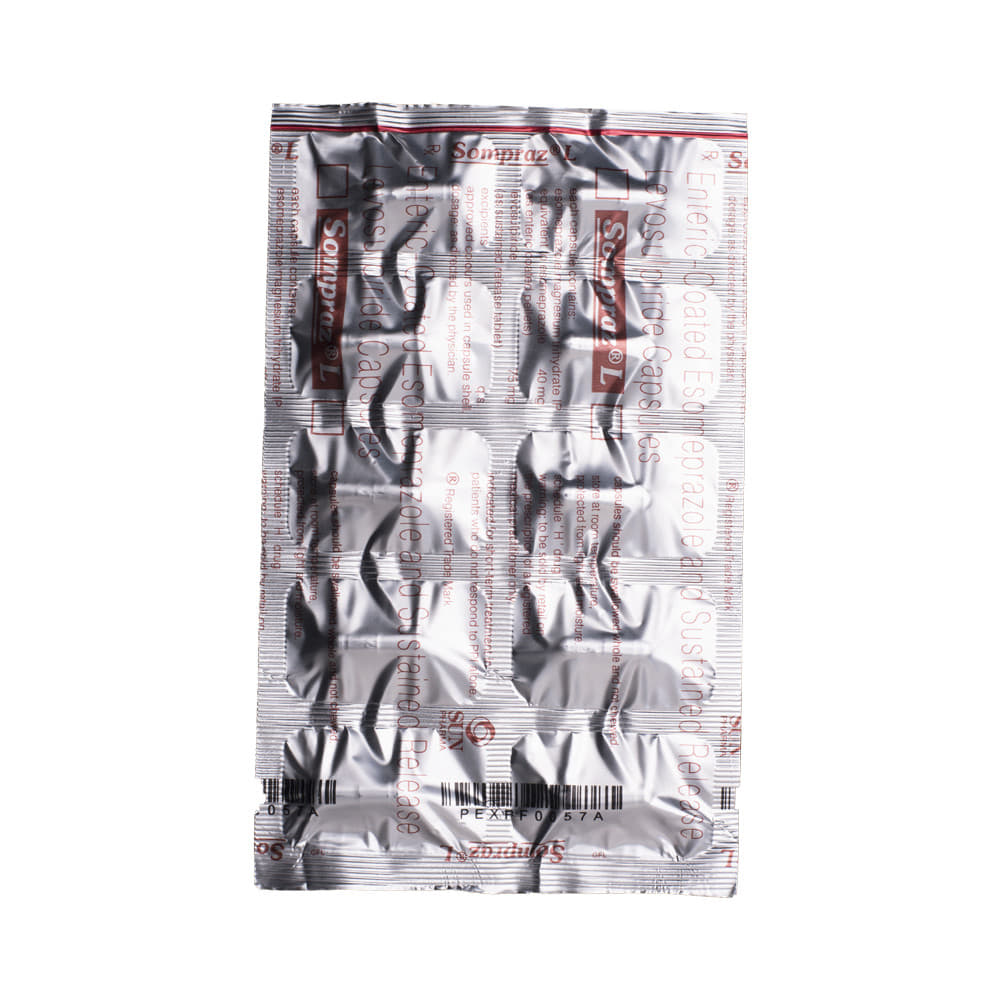 Sompraz L Capsule SR is a prescription medicine used in the treatment of gastroesophageal reflux disease (acid reflux). It works by relieving the symptoms such as heartburn, stomach pain, or irritation. It also neutralizes the acid production in the stomach to prevent discomfort. Sompraz L Capsule SR is taken without food in a dose and duration as advised by the doctor. The dose you are given will depend on your condition and how you respond to the medicine. You should keep taking this medicine for as long as your doctor recommends. If you stop treatment too early your symptoms may come back and your condition may worsen. Let your healthcare team know about all other medications you are taking as some may affect, or be affected by this medicine.The most common side effects include diarrhea, nausea, vomiting, stomach pain, flatulence, constipation, and headache. Most of these are temporary and usually resolve with time. Contact your doctor straight away if you are at all concerned about any side effects. To overcome constipation, you should add fibre-rich foods in your diet and stay hydrated. It may also cause sleepiness, so do not drive or do anything that requires mental focus until you know how this medicine affects you. Avoid drinking alcohol while taking this medicine as it can worsen your sleepiness. Lifestyle modifications like having cold milk and avoiding hot tea, coffee, spicy food or chocolate can help you to get better results.Before taking this medicine, you should tell your doctor if you are pregnant, planning pregnancy or breastfeeding. You should also tell your doctor if you have liver or kidney diseases so that your doctor can prescribe a suitable dose for you.