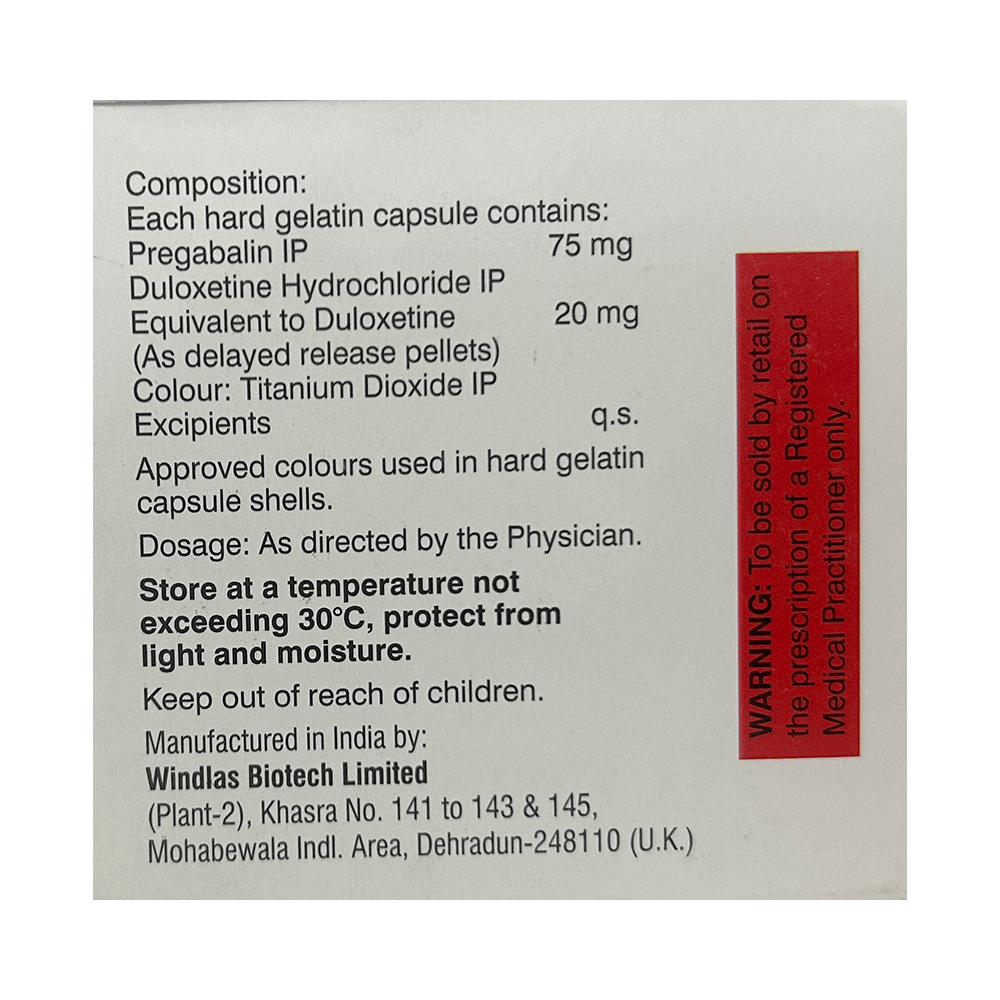 Salt Composition: Pregabalin (75mg) + Duloxetine (20mg)