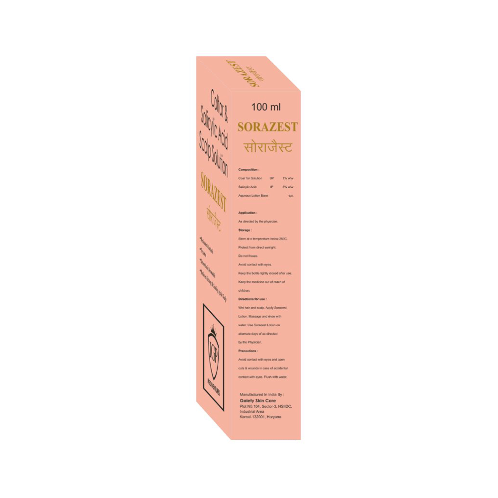 Sorazest Solution has a combination of medicines that is used to treat psoriasis. It helps in softening of the skin. Sorazest Solution should be used in the dose and duration as advised by your doctor. Wash your hands before using this medicine. It is advised to check the label for directions before use. It is for external use only.Do not use this medicine more than the recommended dose. Inform your doctor if you have known allergies from this medicine. The common side effects of this medicine include redness, dry skin, and irritation at the application site.If these side effects or any other symptoms which you think are because of this medicine persist for a longer duration, please consult your doctor. Inform your doctor if you are pregnant or are suffering from any other disease. This medicine is not safe to use in breastfeeding mothers.