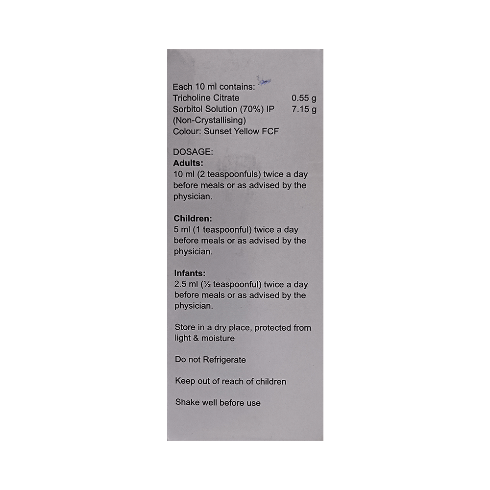 Salt Composition: Tricholine Citrate (0.55gm) + Sorbitol (7.15gm)
