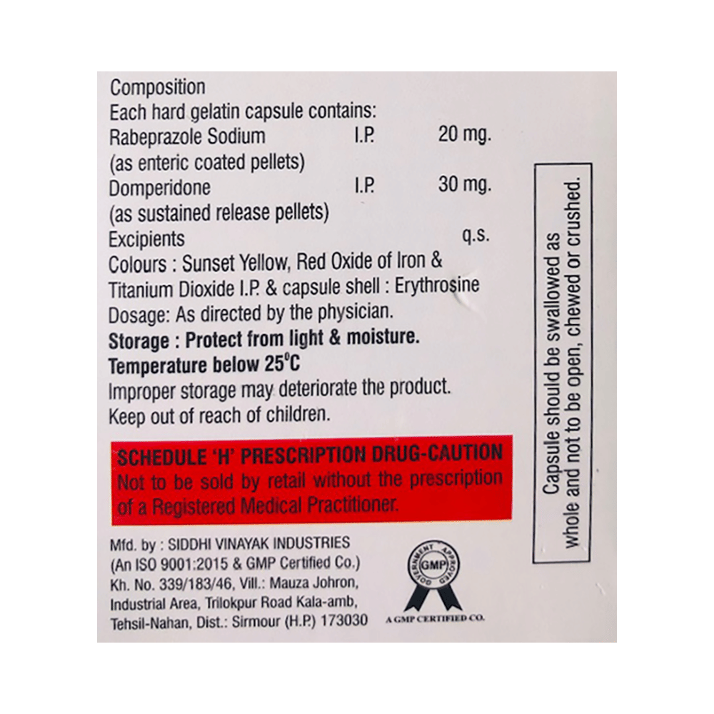Salt Composition: Domperidone (30mg) + Rabeprazole (20mg)