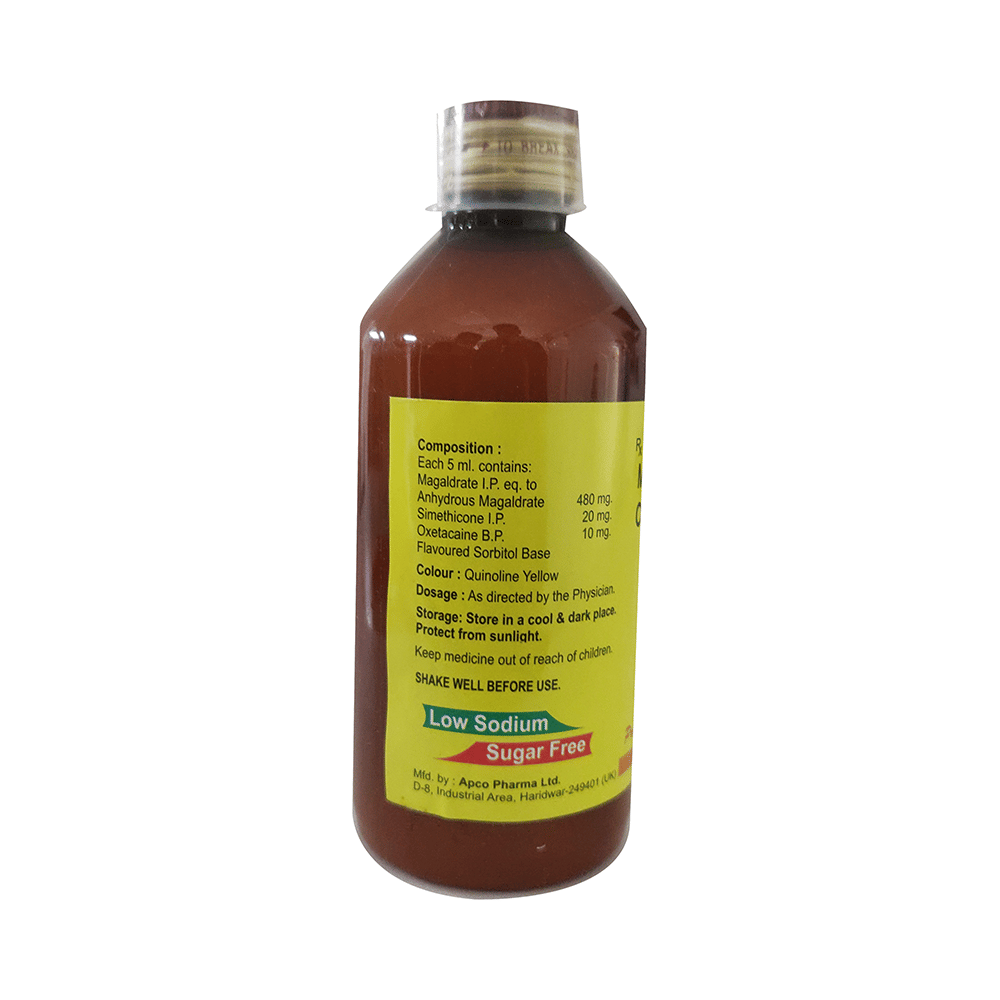 Salt Composition: Magaldrate (480mg/5ml) + Simethicone (20mg/5ml) + Oxetacaine (10mg/5ml)