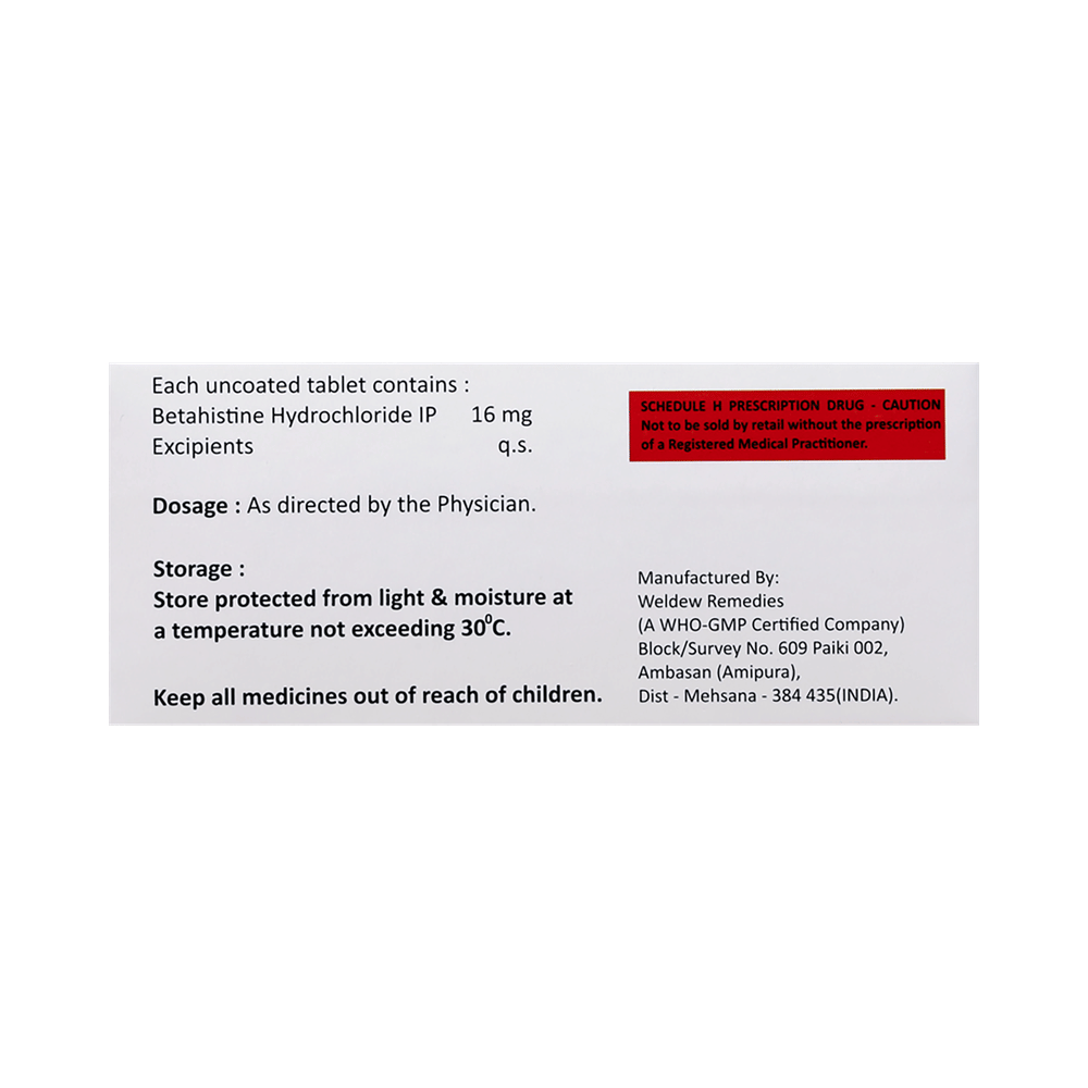 Salt Composition: Betahistine (16mg)
